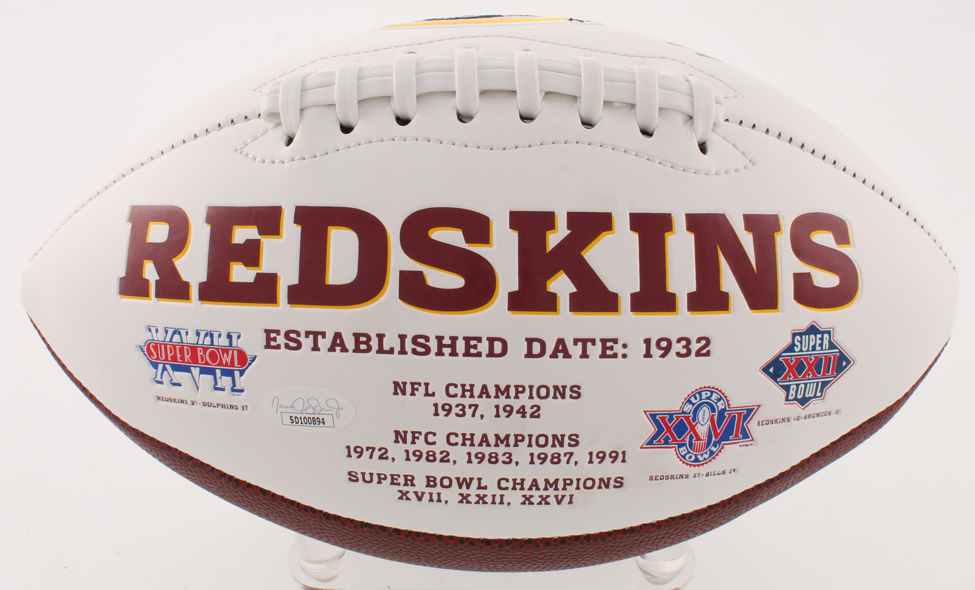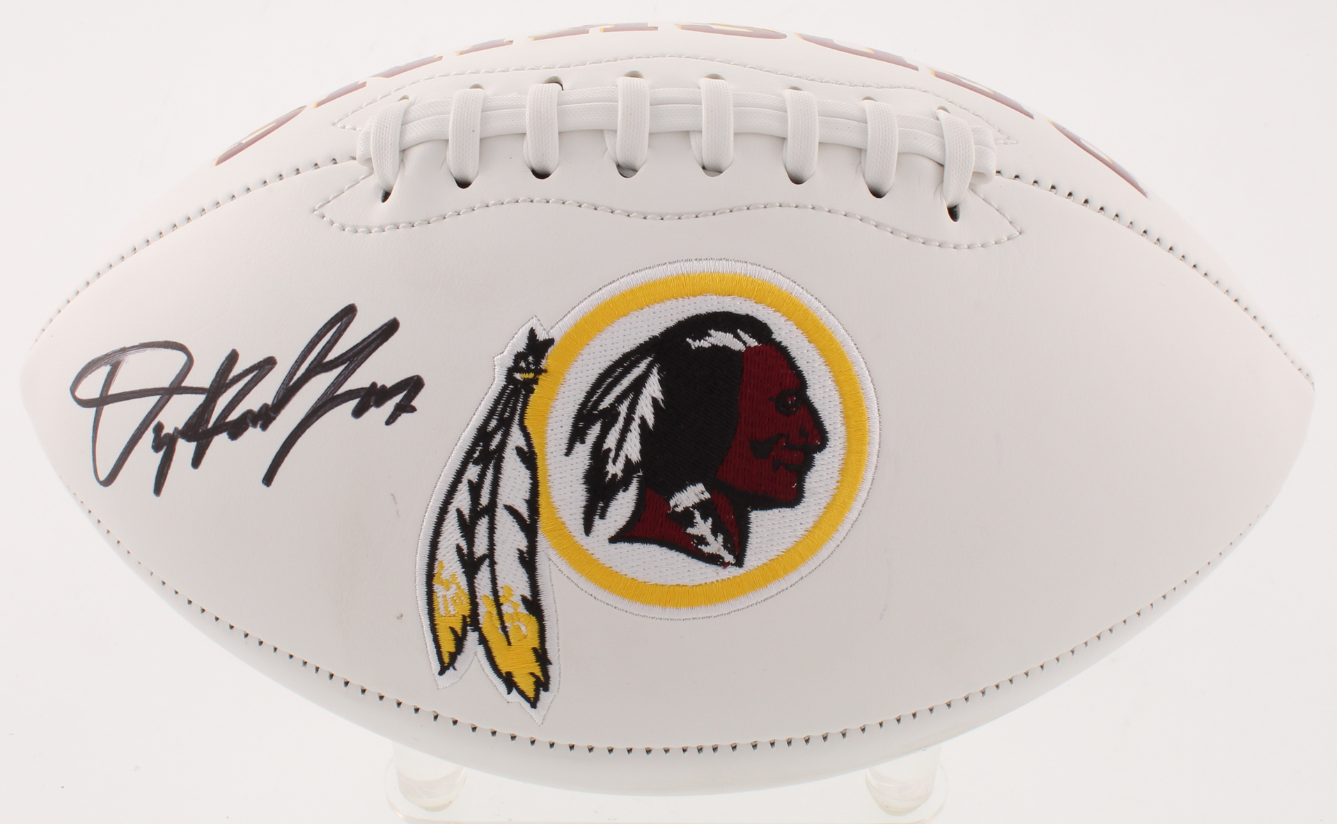 Washington Redskins logo football. Hand-signed in black felt-tip pen by Dwayne Haskins.