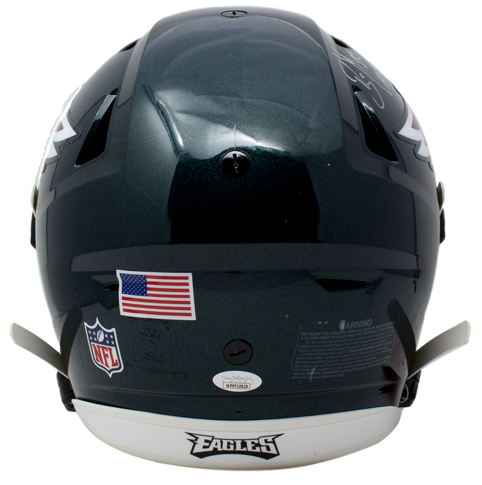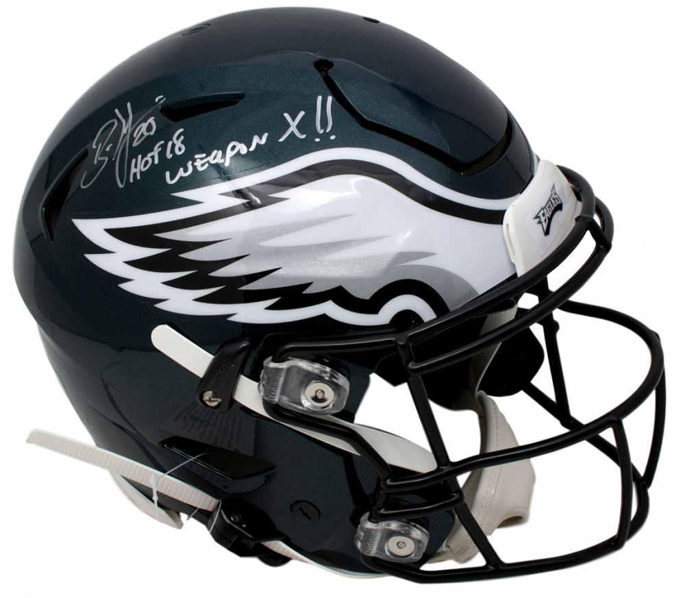 Riddell Philadelphia Eagles full-size authentic on-field SpeedFlex helmet. Hand-signed in silver paint pen by Brian Dawkins (HOF).