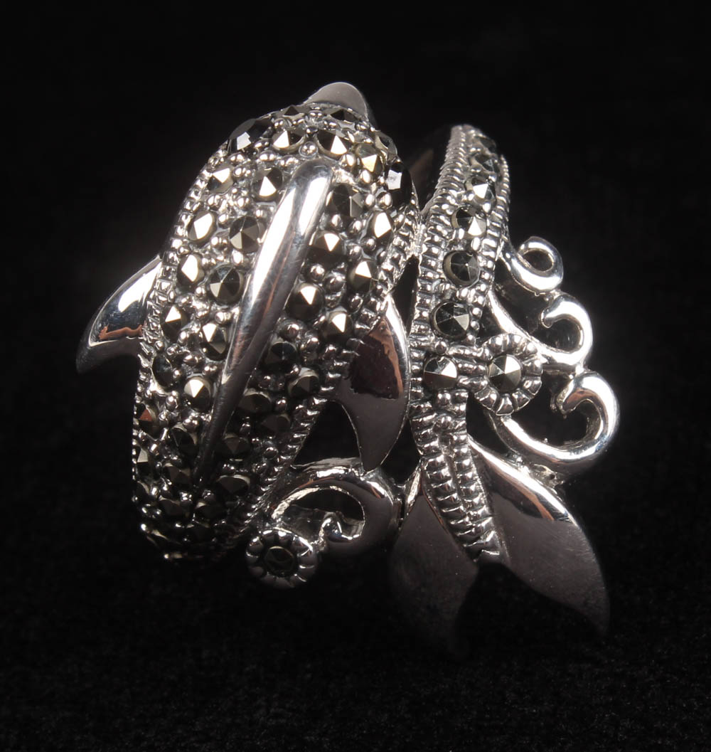Silver Genuine Marcasite Dolphin Ring