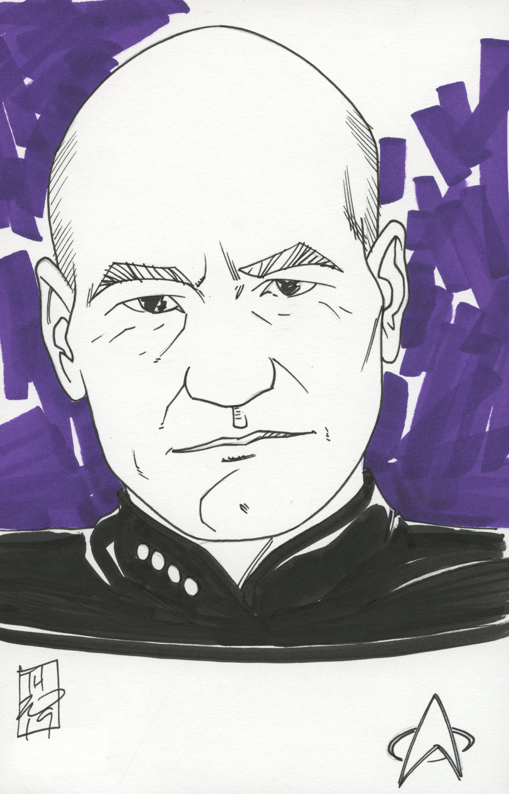 Tom Hodges - Captain Jean-Luc Picard - "Star Trek" Signed ORIGINAL 5.5" x 8.5" Color Drawing on Paper (1/1)
