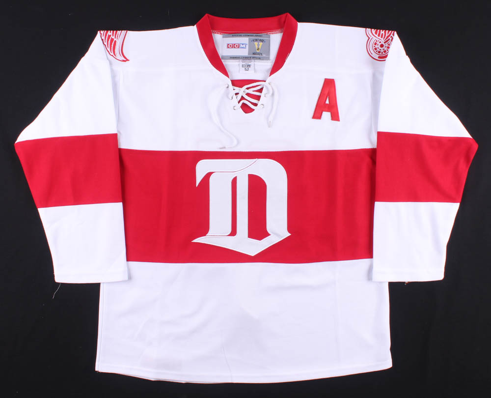 CCM custom on-ice style alternate captain jersey. Everything is sewn on, size 52. Hand-signed in blue felt-tip pen by Sergei Fedorov (HOF).