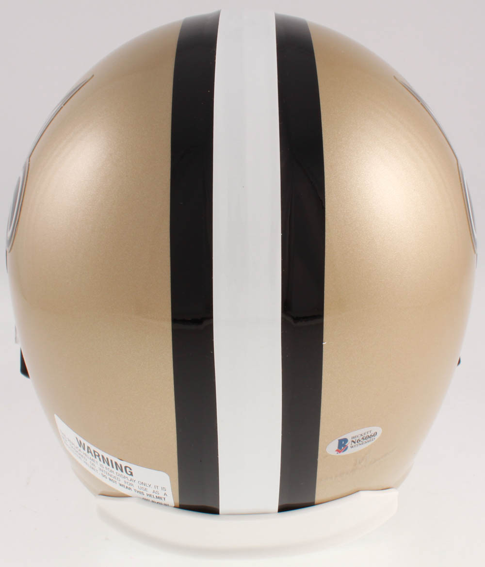 Riddell New Orleans Saints full-size replica helmet. Hand-signed and inscribed in black felt-tip pen by Alvin Kamara.