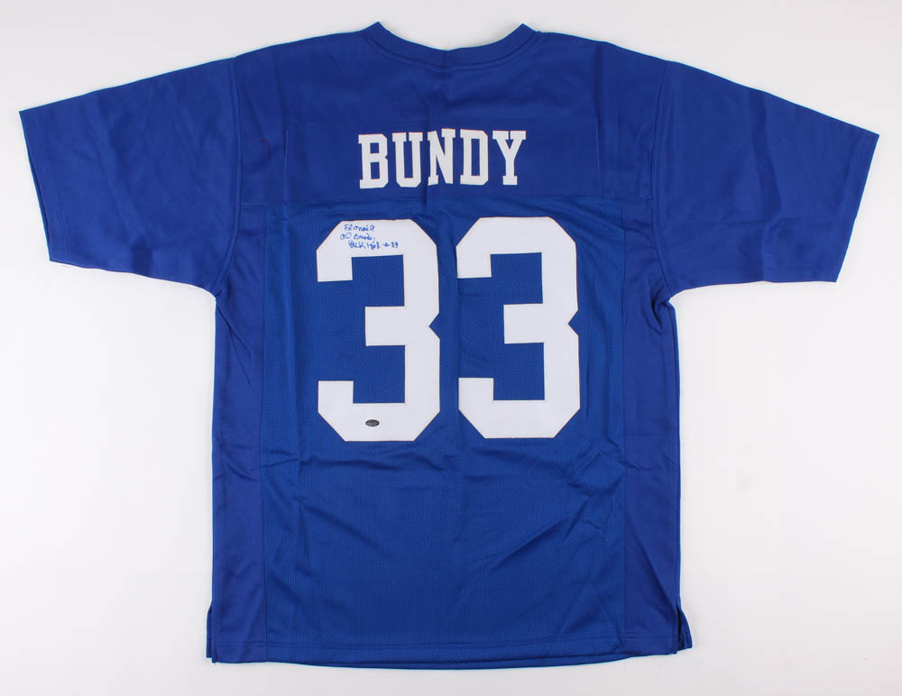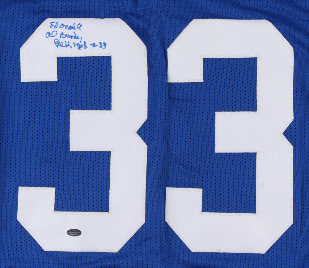 Custom on-field style jersey. Everything is sewn on, size XL. Hand-signed and inscribed in blue felt-tip pen by Ed O'Neill (Al Bundy).