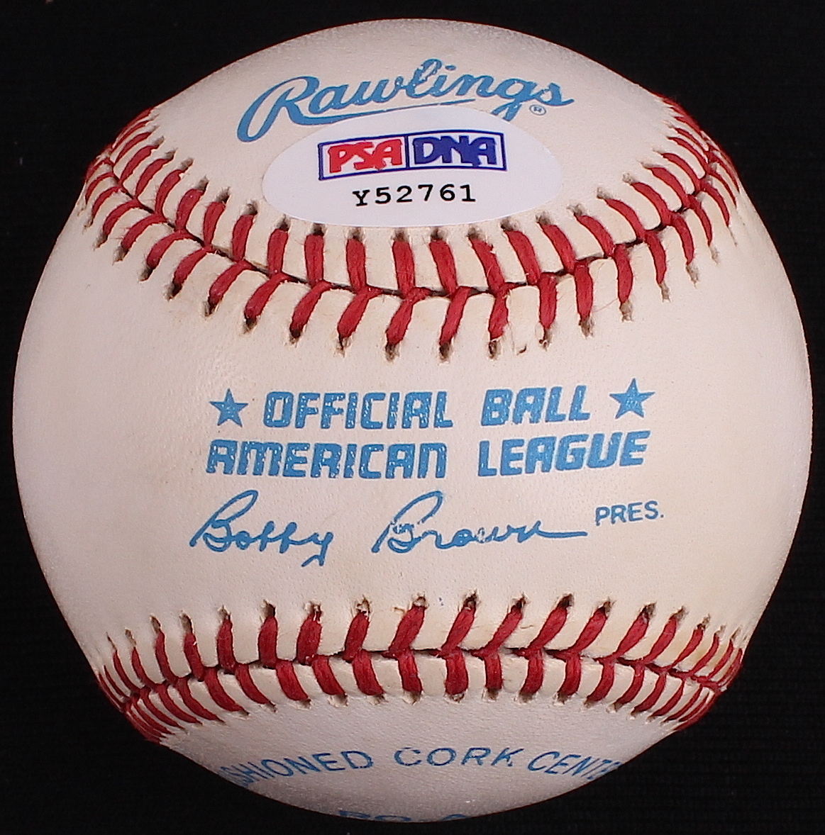 Official American League Baseball. Hand-signed in blue ink pen by Nolan Ryan (Rangers HOF). The autograph includes an official PSA/DNA hologram and matching COA for authenticity purposes.