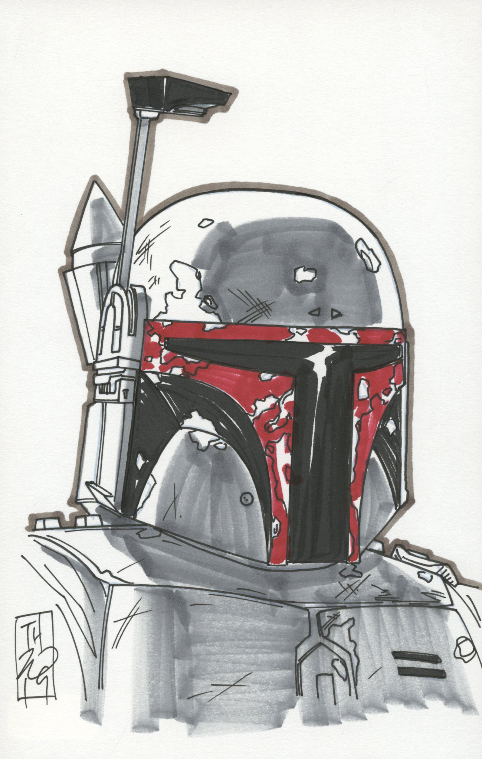 Tom Hodges - Boba Fett - "Star Wars" - Signed ORIGINAL 5.5" x 8.5" Drawing on Paper (1/1)
