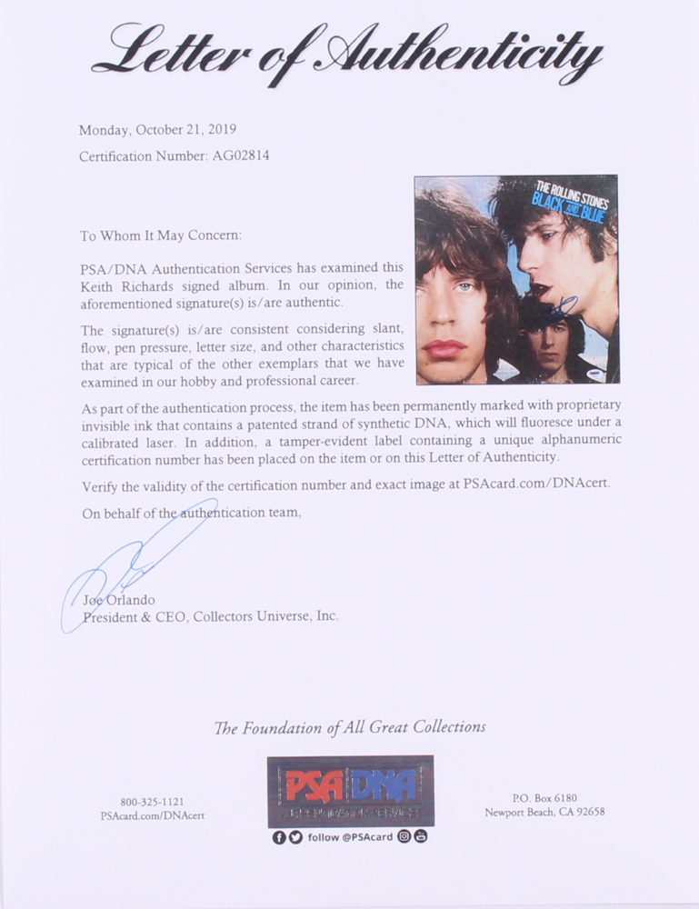 Keith Richards Signed The Rolling Stones "Black & Blue" Vinyl Record Album (PSA LOA)