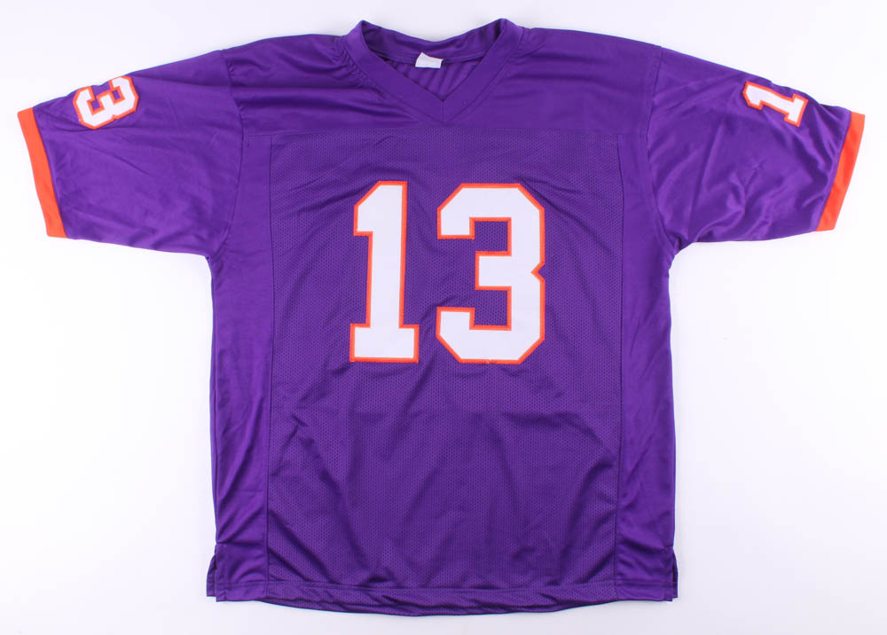 Custom on-field style jersey. Everything is sewn on, size XL. Hand-signed in black felt-tip pen by Hunter Renfrow.