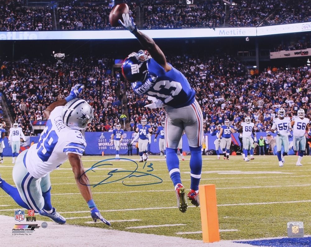 Giants' stars Odell Beckham Jr has personally signed this 16 x 20 photograph. Odell Beckham Jr is and will be seen as a dominant force in the Giants' offense. Odell Beckham, Jr easily executed one of the most memorable catches in football, with this amazing one-handed catch against rival the Dallas Cowboys. Celebrate one of the greatest catches in football with this autographed piece from one of the most exciting young players in football today. This Odell Beckham Jr autographed photo is Guaranteed Authentic by Steiner Sports and include a Steiner Sports Certificate of Authenticity and an accompanying tamper-proof Steiner Hologram. "The Steiner Seal Means It's Real." Includes certificate of authenticity and hologram.