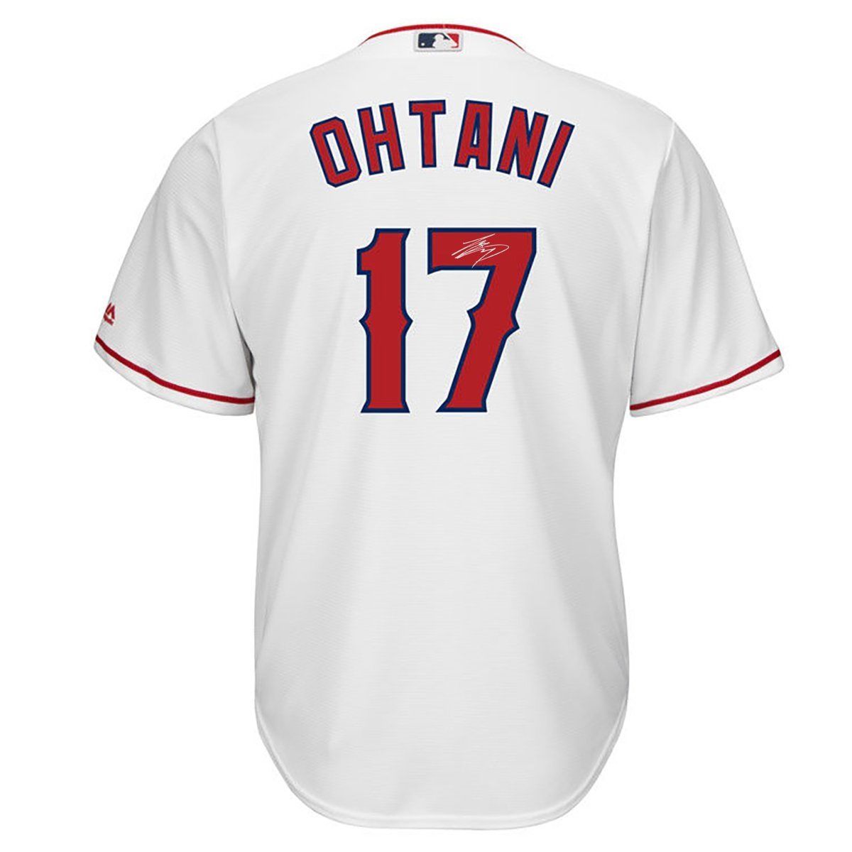 Majestic Authentic on-field style jersey. Everything is sewn on. Hand-signed in silver paint pen by Shohei Ohtani.