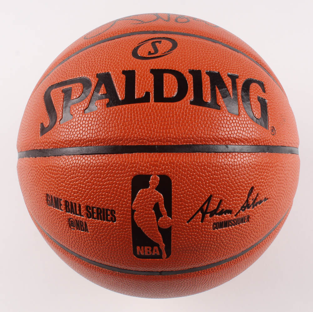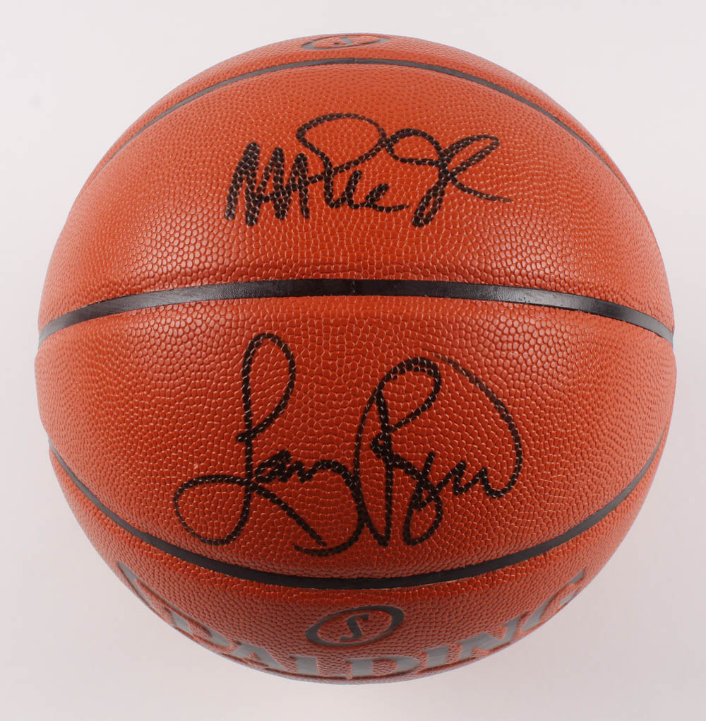 Spalding NBA Game Ball Series basketball. Hand-signed in black felt-tip pen by Larry Bird (Boston Celtics, HOF) and Magic Johnson (Los Angeles Lakers, HOF).