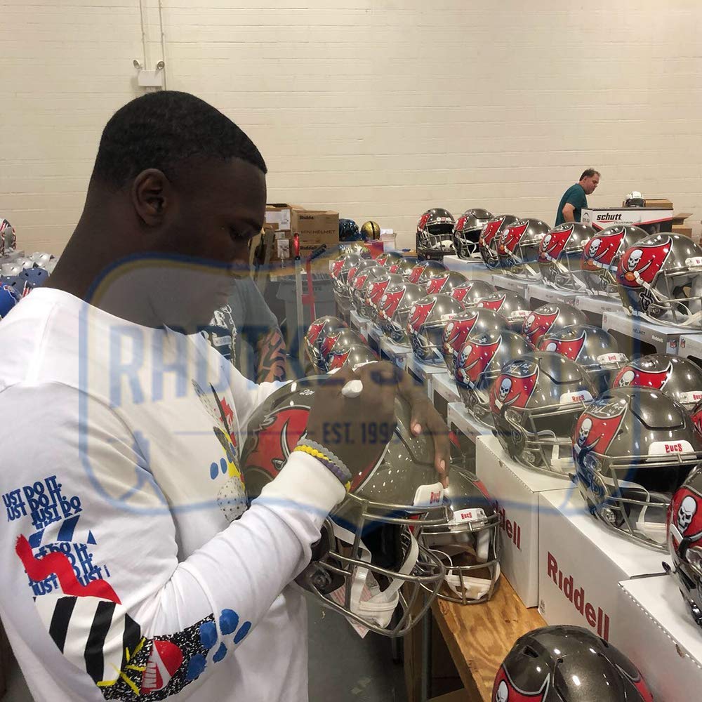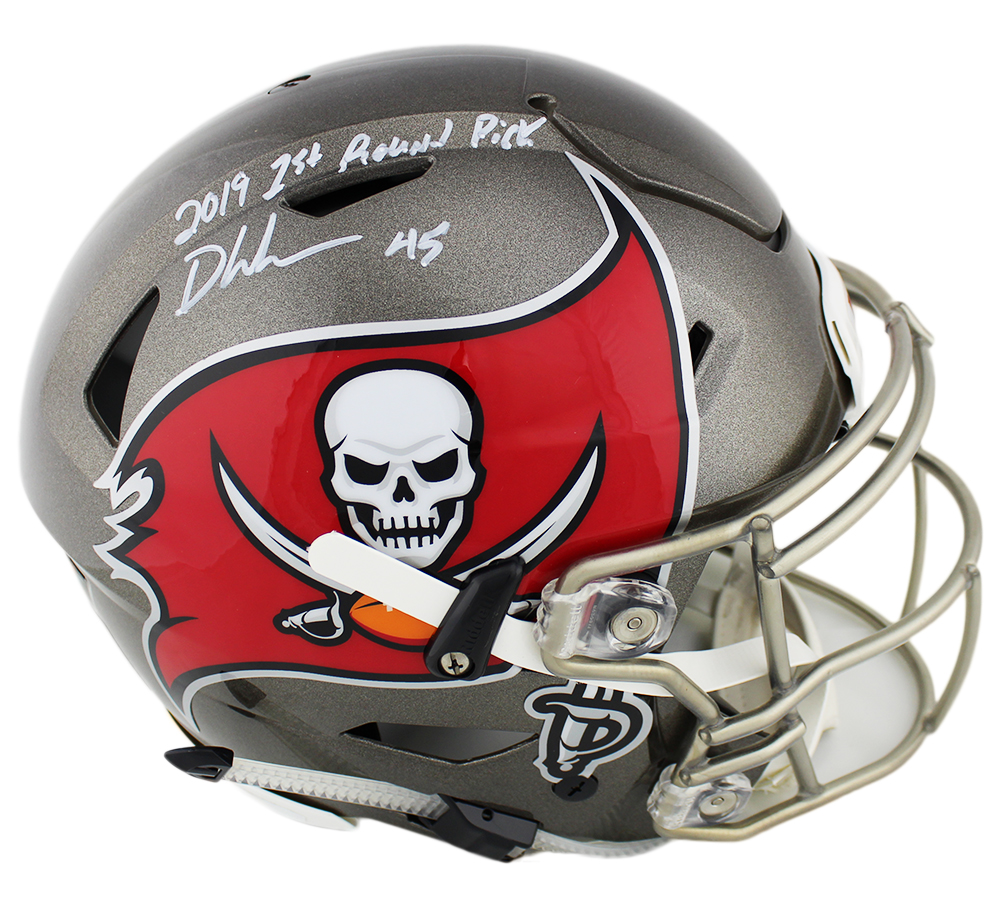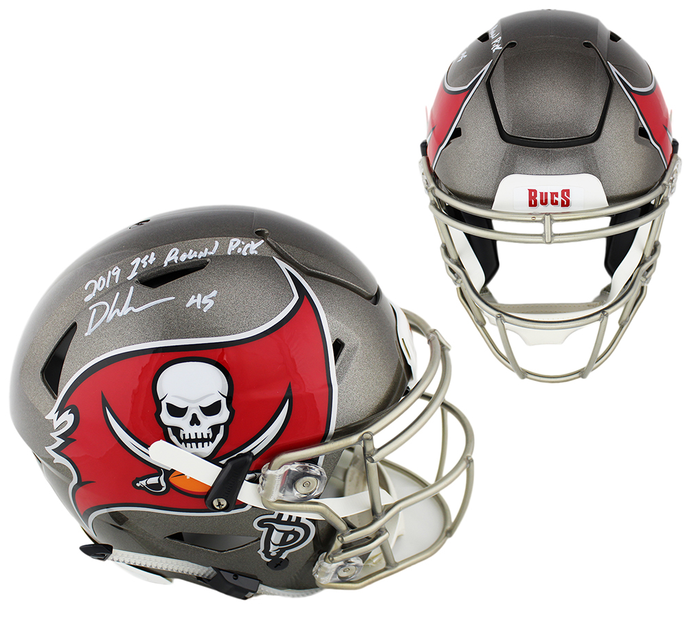 Tampa Bay Buccaneers Full-Size Authentic On-Field SpeedFlex Helmet. Hand-signed in white paint pen by Devin White.