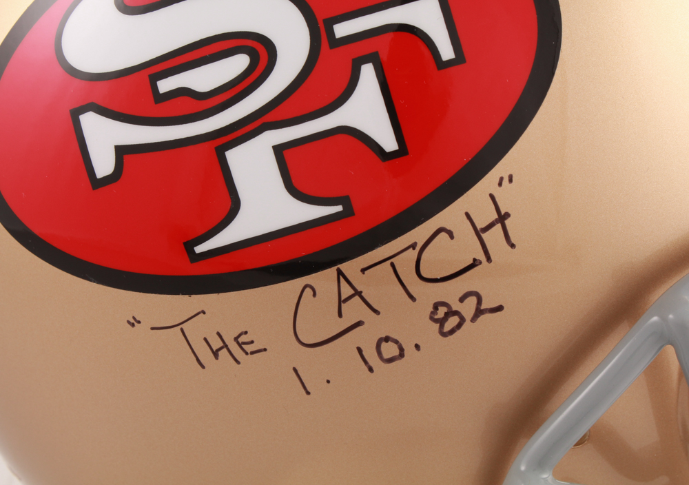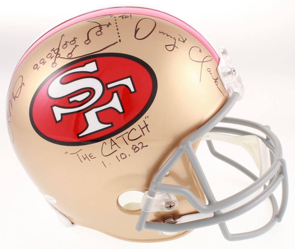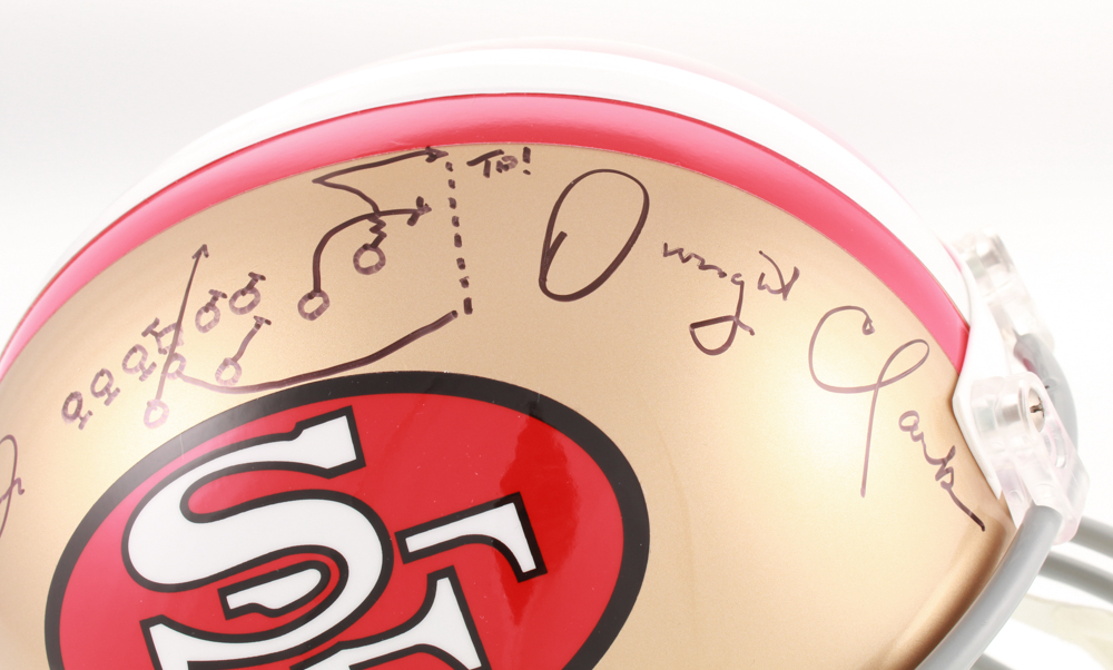 Joe Montana & Dwight Clark Signed San Francisco 49ers Full-Size Helmet Inscribed "The Catch 1.10.82" & Hand-Drawn Play (Beckett Hologram & TSE COA)