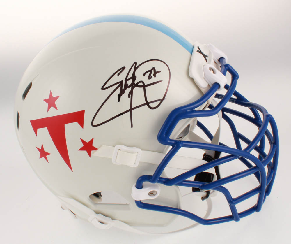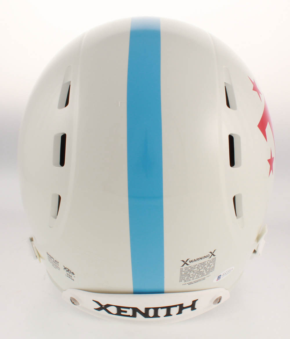 Xeneth Tennessee Titans full-size authentic on-field helmet. Hand-signed in black felt-tip pen by Eddie George.