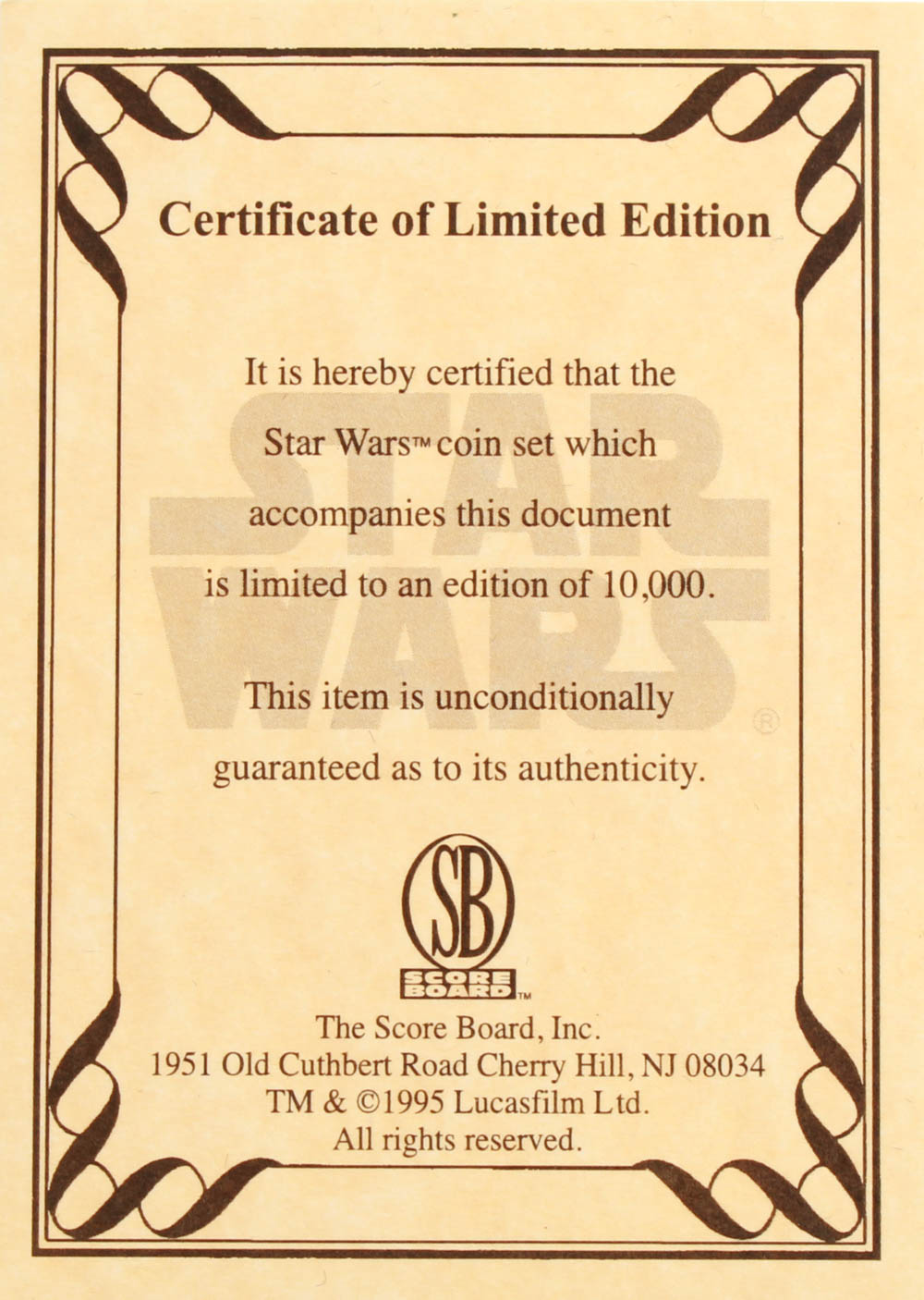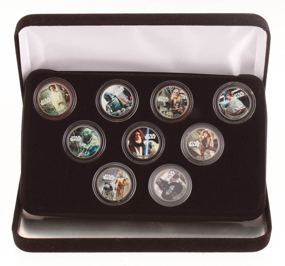Coin set of (9) Star Wars Colorized Quarters. The set is a limited edition of 10,000.