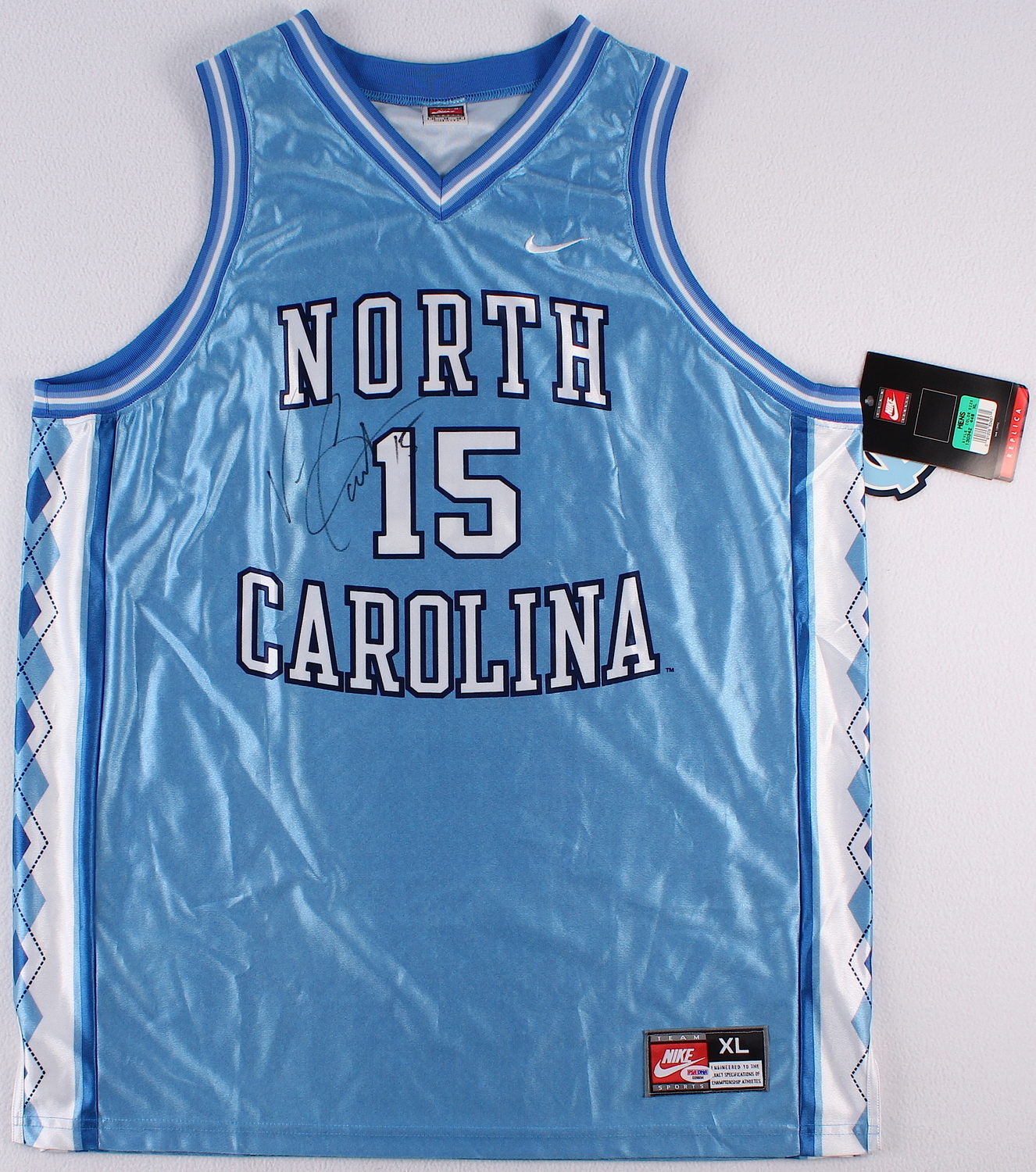 Nike on-court style jersey. Everything sewn on, size XL. Hand-signed in black felt-tip pen by Vince Carter (Grizzlies). The autograph includes an official PSA/DNA hologram for authenticity purposes.