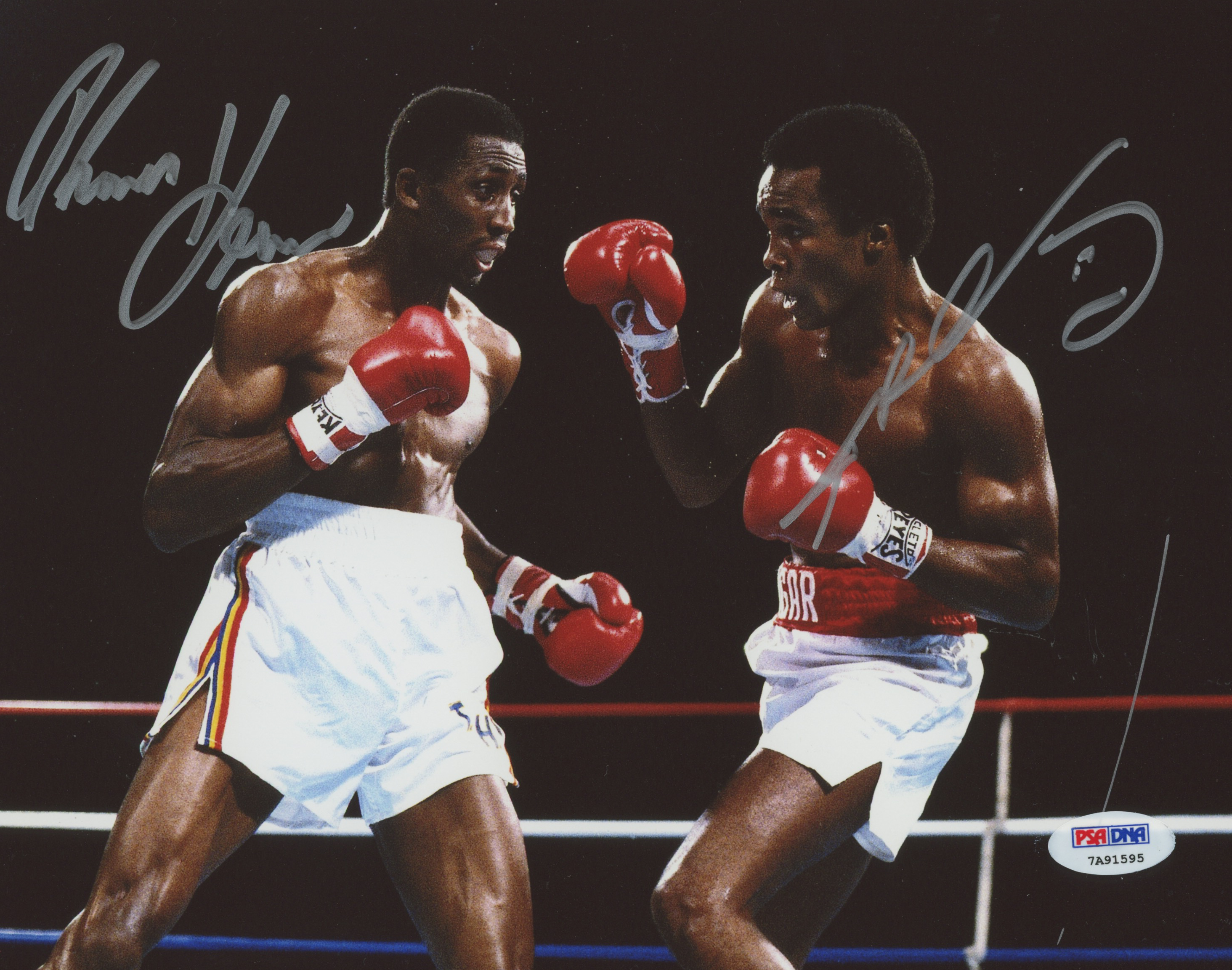 Sugar Ray Leonard & Thomas "Hitman" Hearns Signed 8x10 Photo (PSA COA)