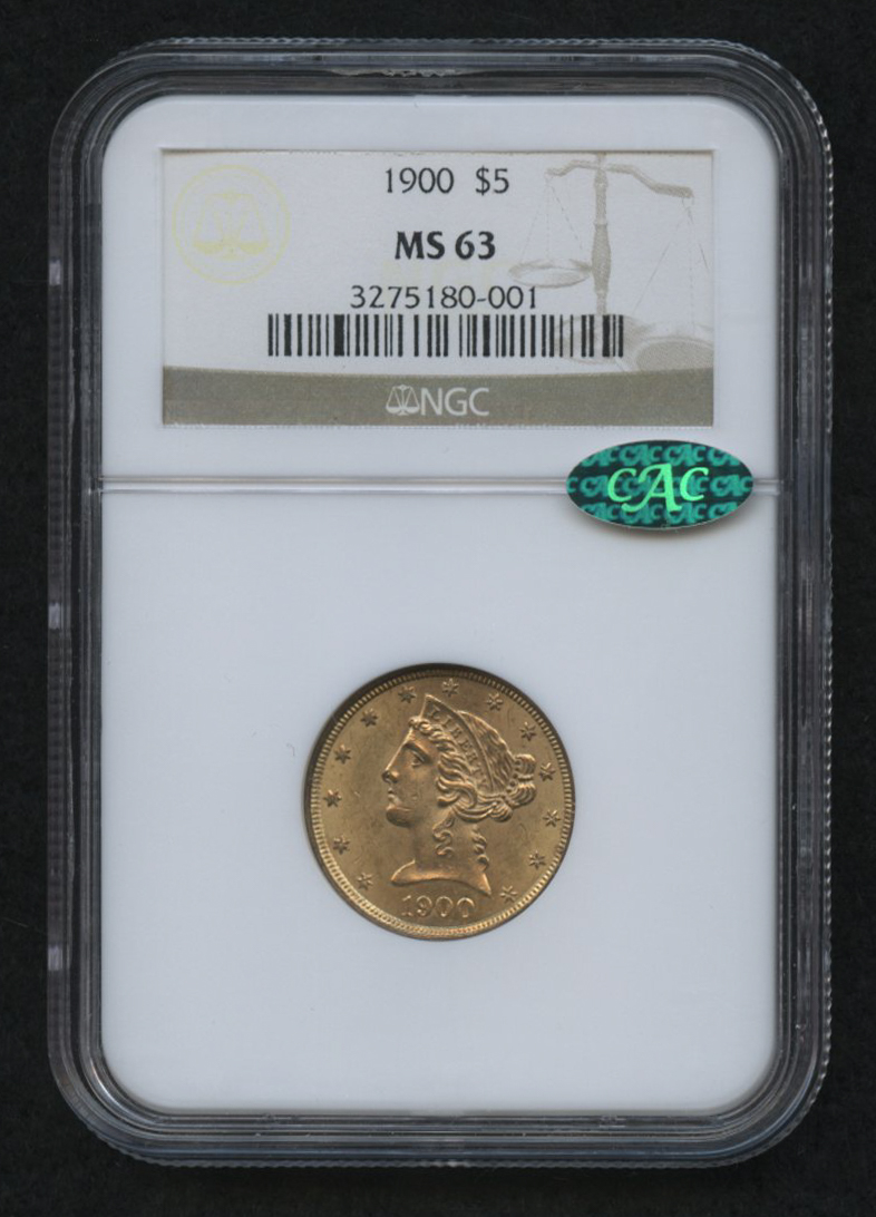 1900 $5 Liberty Head Half Eagle Gold Coin (NGC MS 63) (CAC)