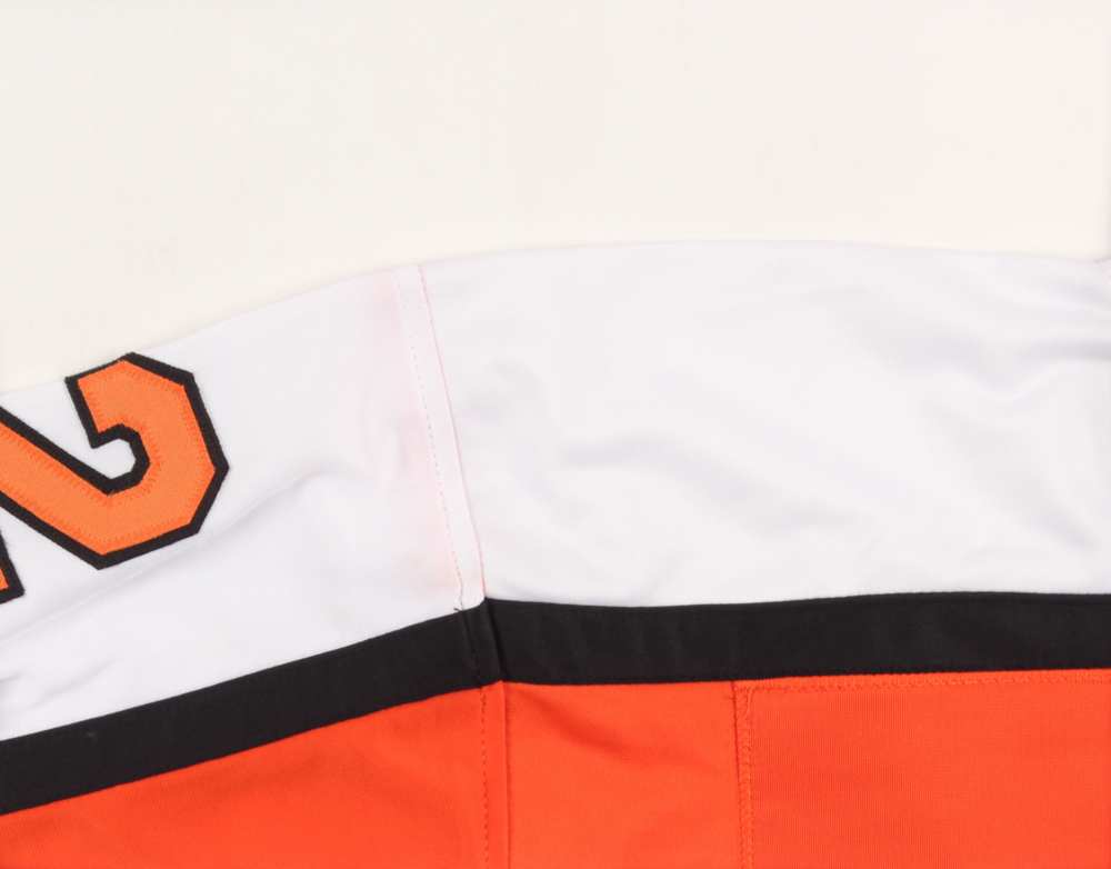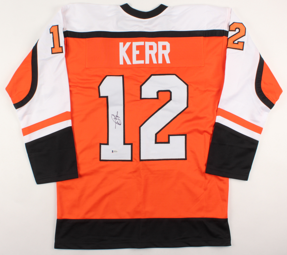 Custom on-ice style jersey. Everything is sewn on, size XL. Hand-signed in black felt tip pen by Tim Kerr. Please see images for further details regarding condition.