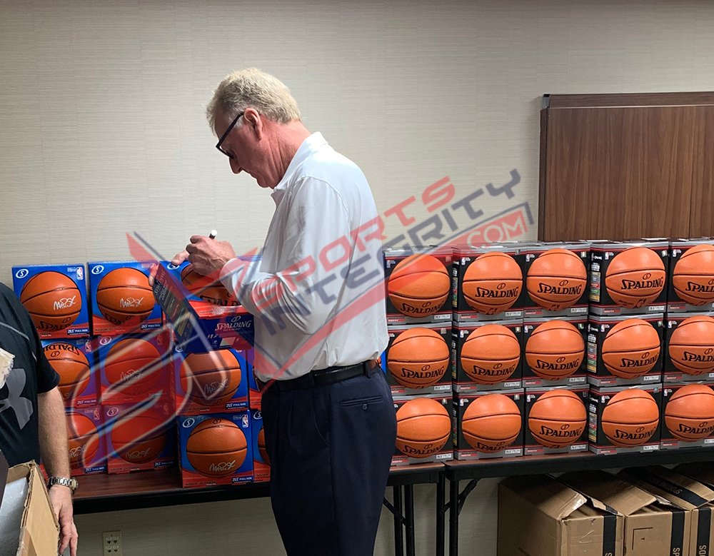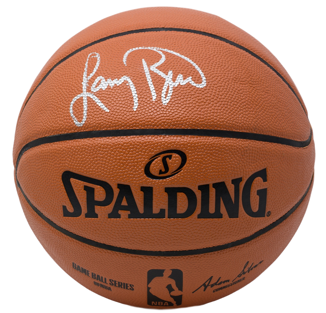Spalding NBA Game Ball Series basketball. Hand-signed in silver paint pen by Larry Bird (Boston Celtics, HOF).