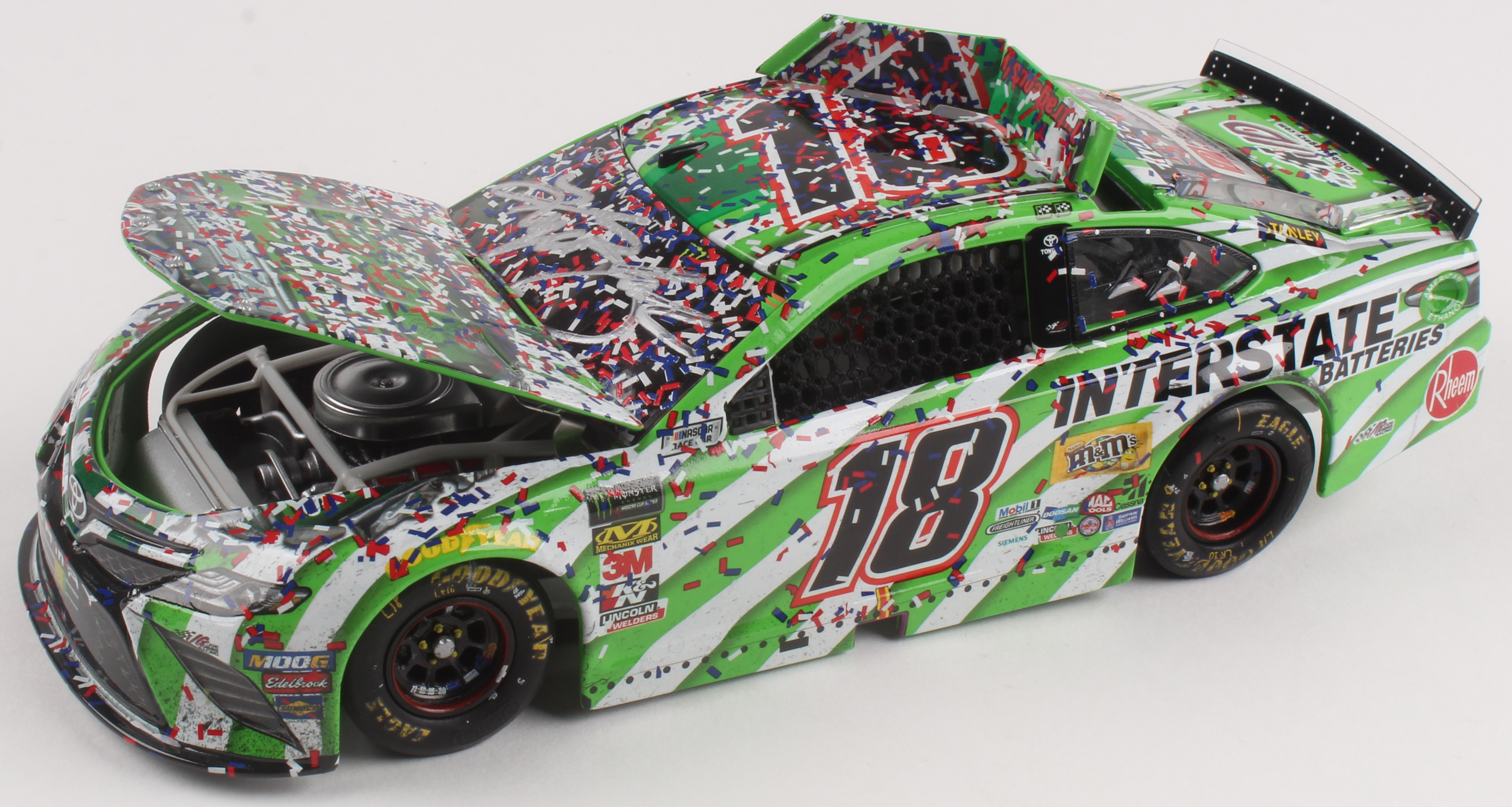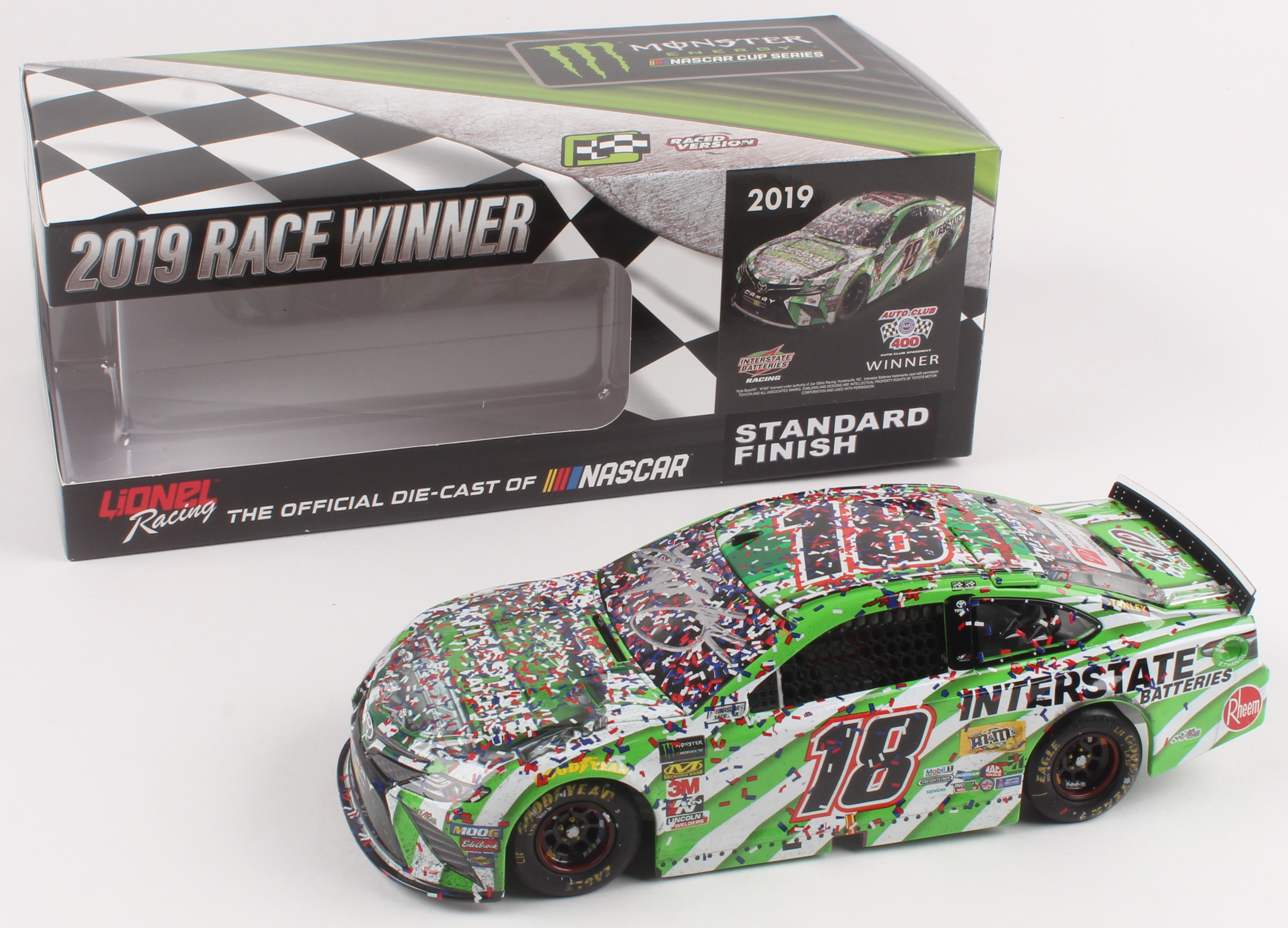 Kyle Busch Signed NASCAR #18 Interstate Batteries 2019 Camry - Auto Club Speedway Win - 1:24 Premium Action Diecast Car (PA COA)