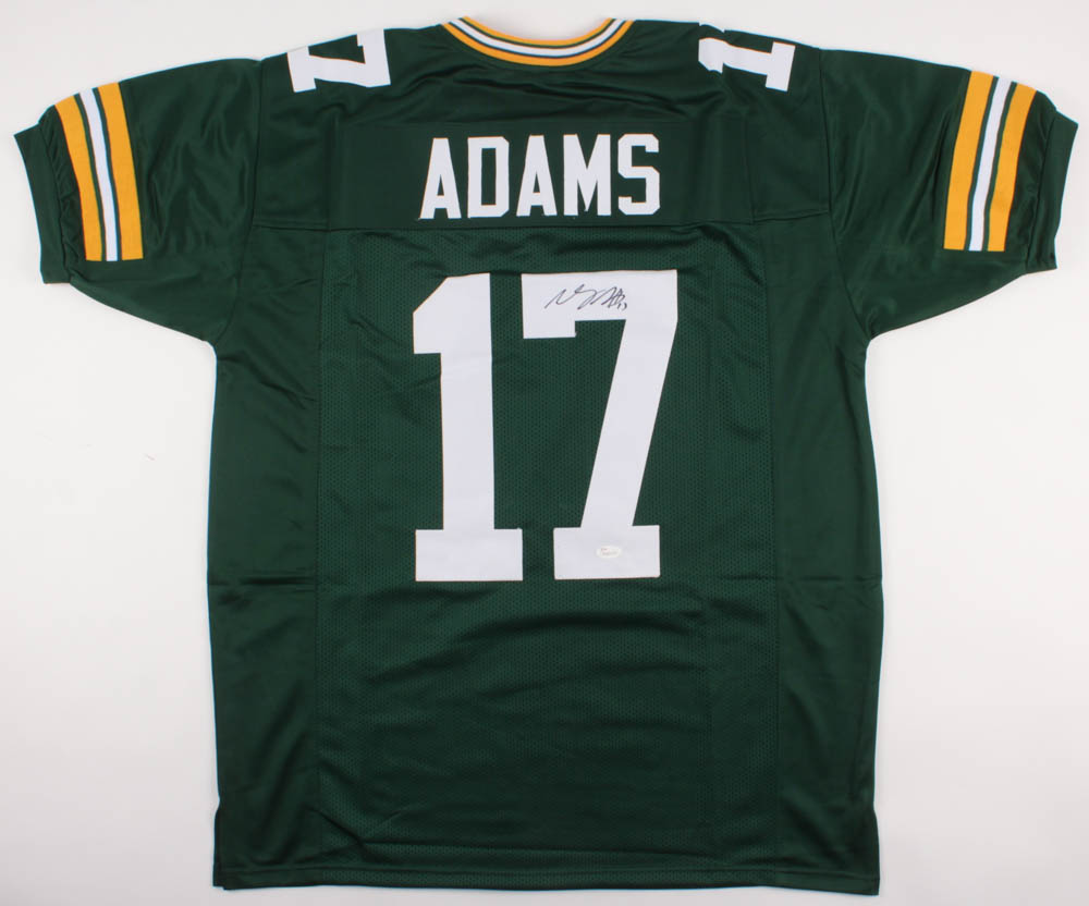 Custom on-field style jersey. Everything is sewn on, size XL. Has been hand-signed by Davante Adams.