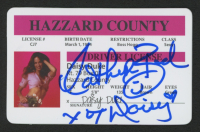 Replica drivers license has been hand-signed in blue felt-tip pen by Catherine Bach (Daisy Duke).