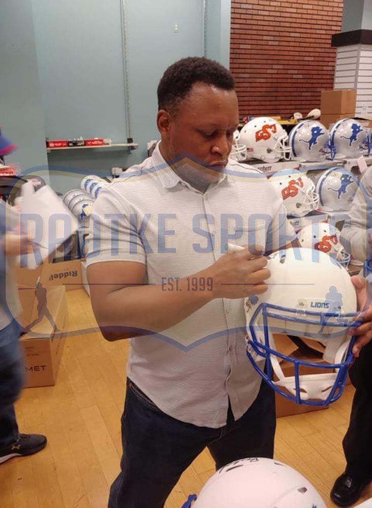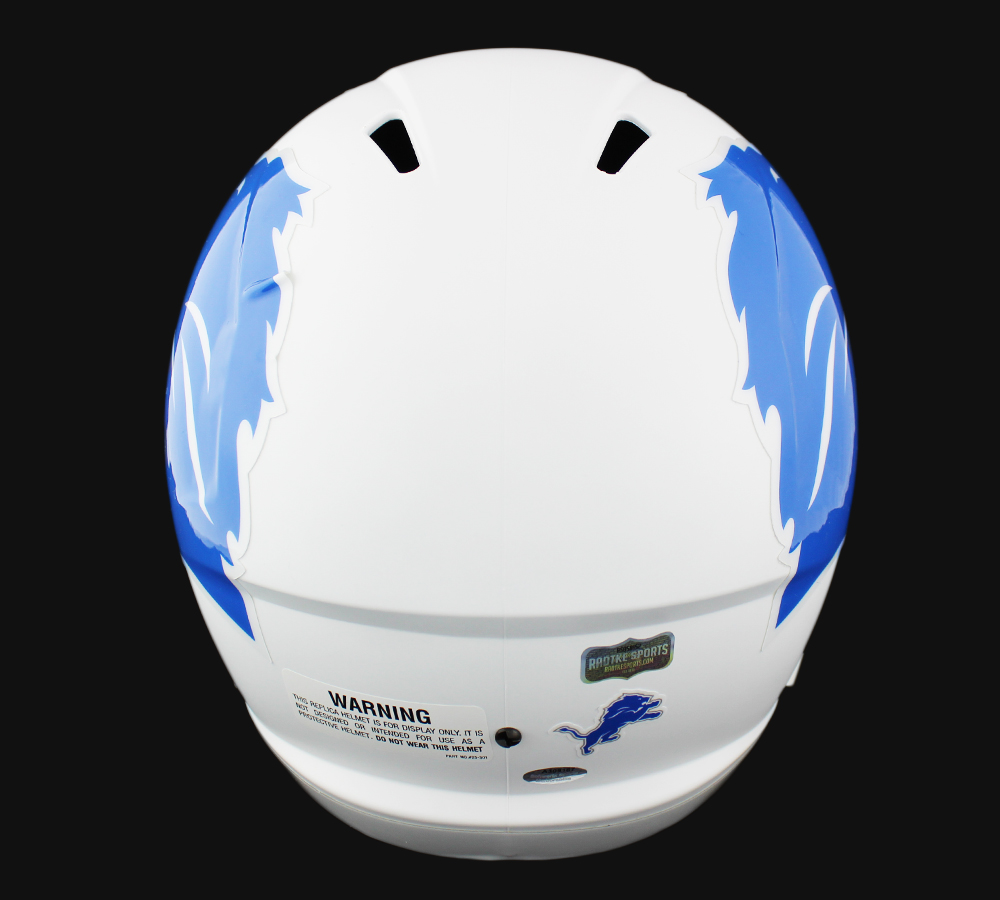 Riddell Detroit Lions full-size replica AMP Alternate Speed helmet. Hand-signed by Barry Sanders (HOF).