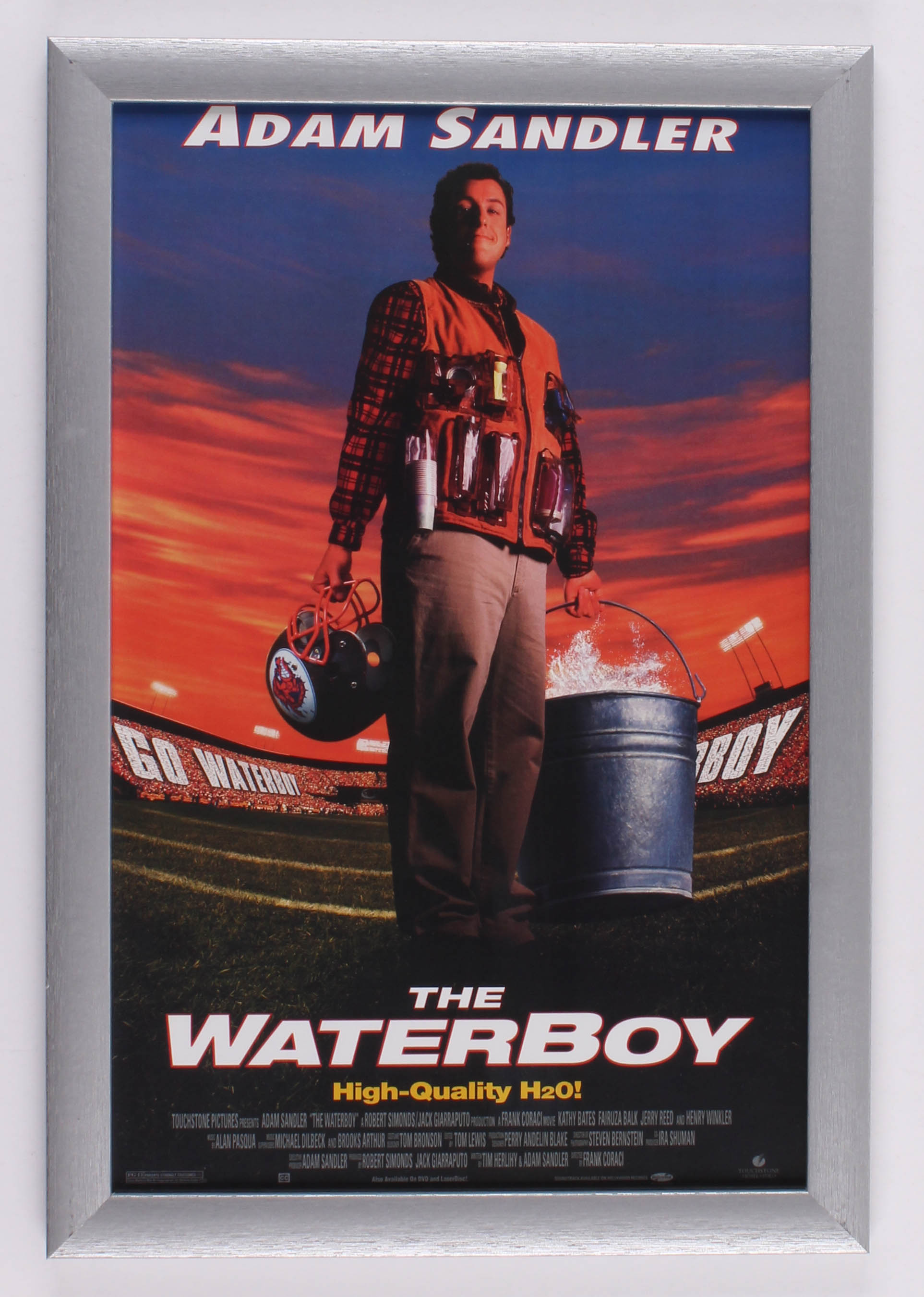Custom frame measures approximately 12" x 18.5" in size and features a movie poster print from the film "The Waterboy" (1998). Please note, the print is not signed.