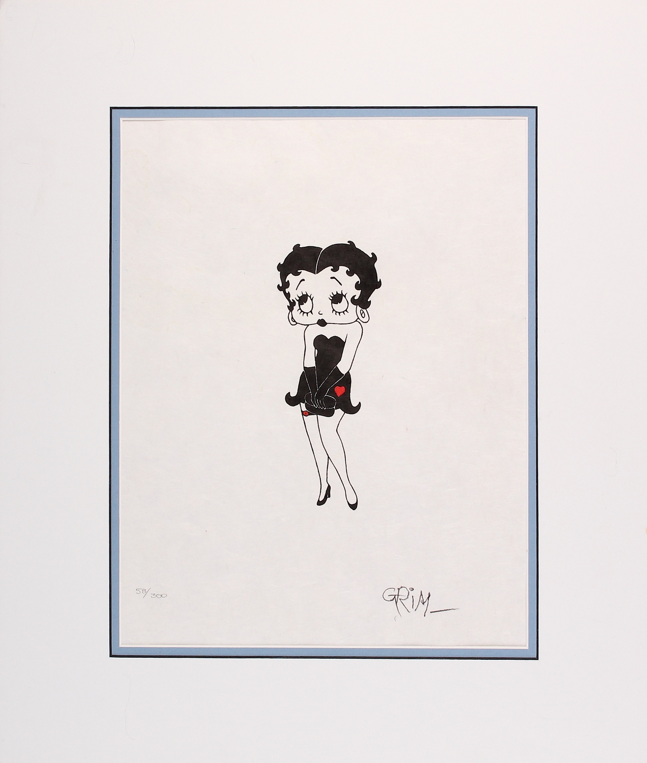 Rare 16 " x 19 " limited edition Betty Boop acid free matted lithograph. Published in 1989 by Circle Fine Art Corp. Published retail price, $3000. The print is numbered 58/300 and is hand-signed by animator Grim Natwick (D 1990). Includes a COA from the publisher, Circle Fine Art Corp.