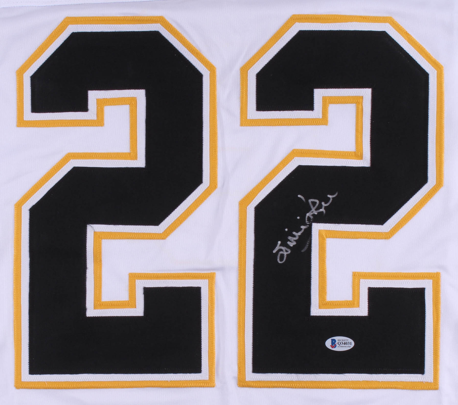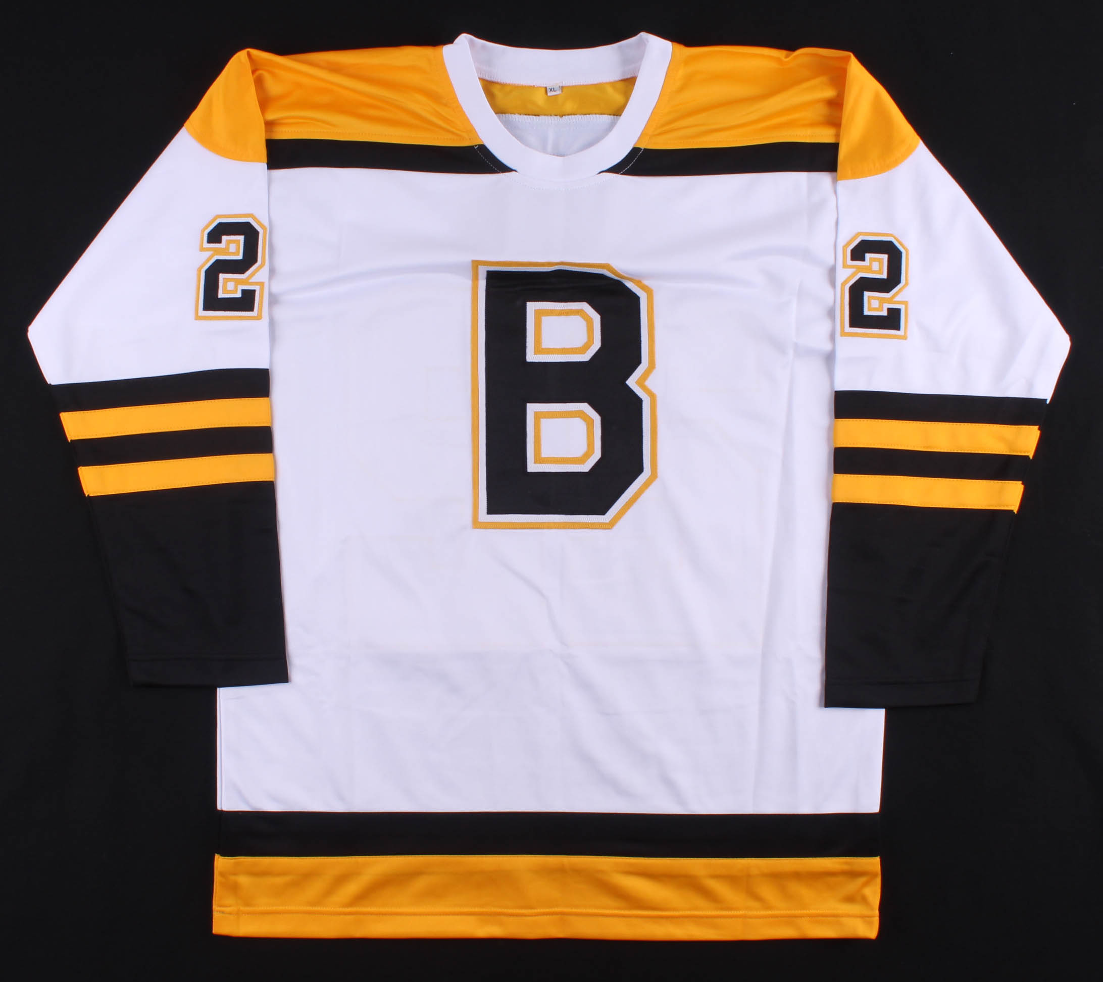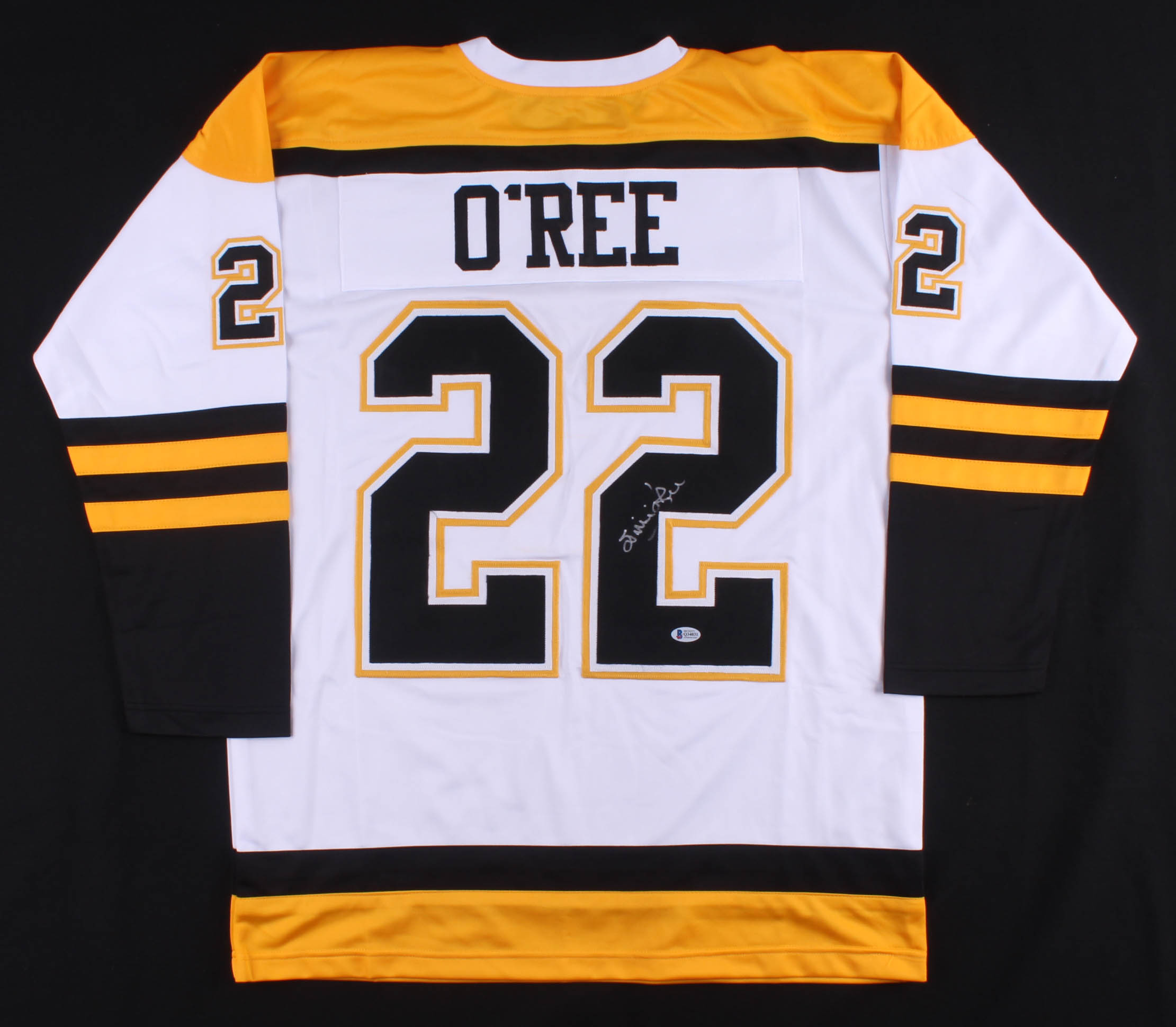 Custom on-ice style jersey. Everything sewn on, size XL. Hand-signed in silver paint pen by Willie O'Ree (HOF).