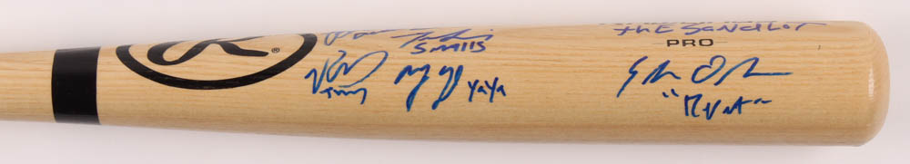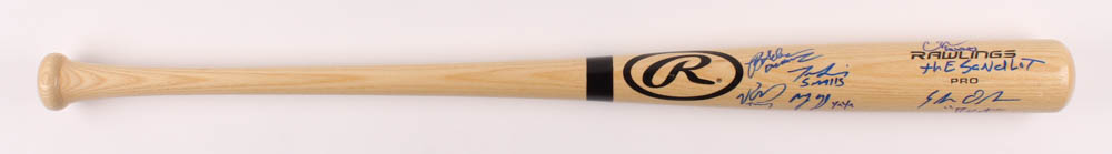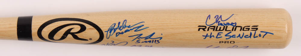 Rawlings Pro baseball bat with "The Sandlot". Hand-signed and inscribed in blue felt-tip pen by (6) including Tom Guiry (Scotty Smalls), Chauncey Leopardi (Michael "Squints" Palledorous), Marty York (Alan "Yeah-Yeah" McClennan), Shane Obedzinski (Tommy "Repeat" Timmons), Victor DiMattia (Timmy Timmons), and Brandon Adams (Kenny DeNunez).