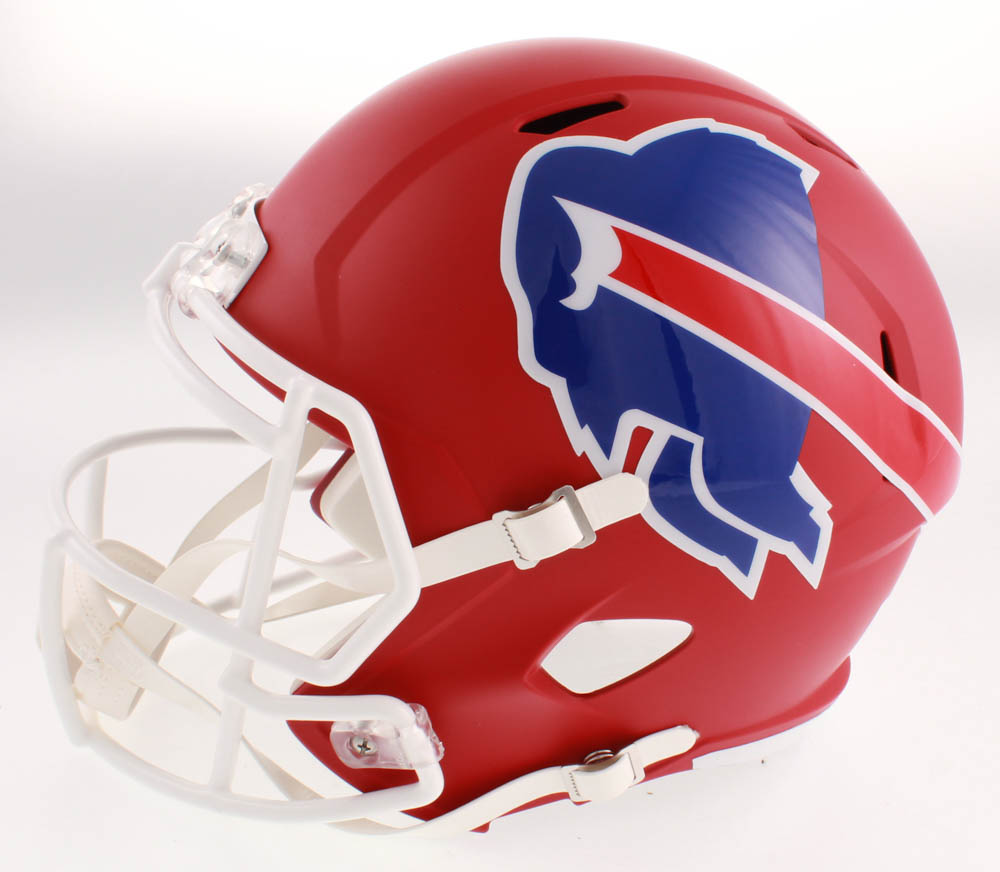 Riddell Buffalo Bills full-size replica AMP Alternate Speed helmet. Hand-signed in white paint pen by Josh Allen.