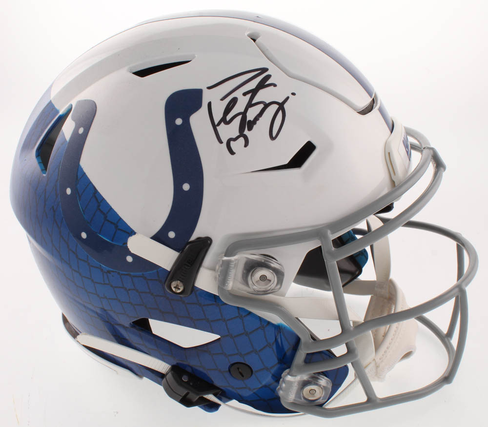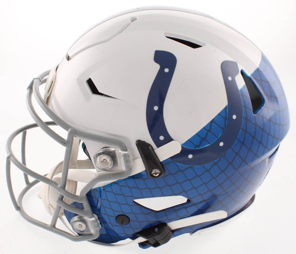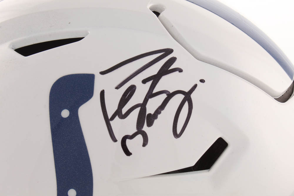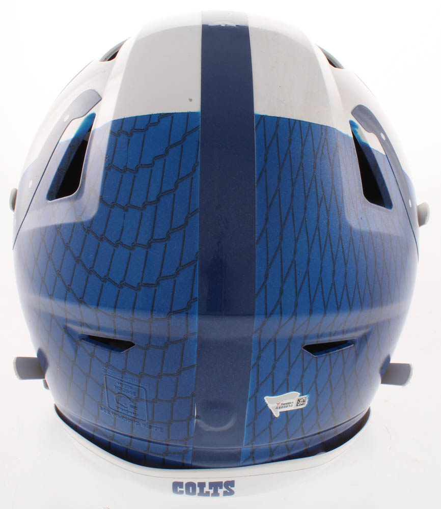 Riddell Indianapolis Colts full-size authentic on-field hydro-dipped SpeedFlex helmet. Hand-signed in black felt-tip pen by Peyton Manning.