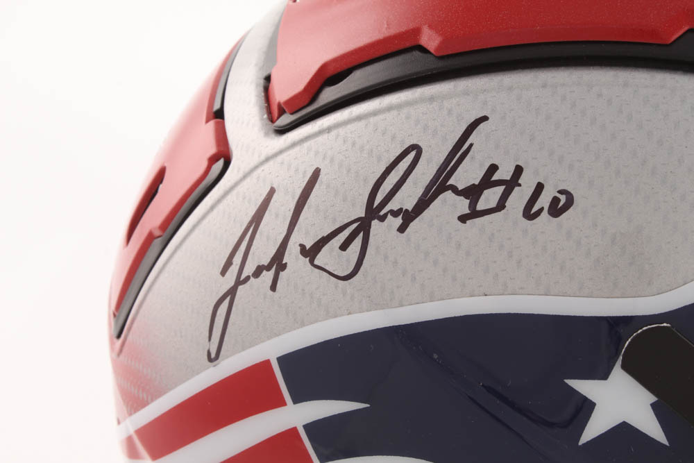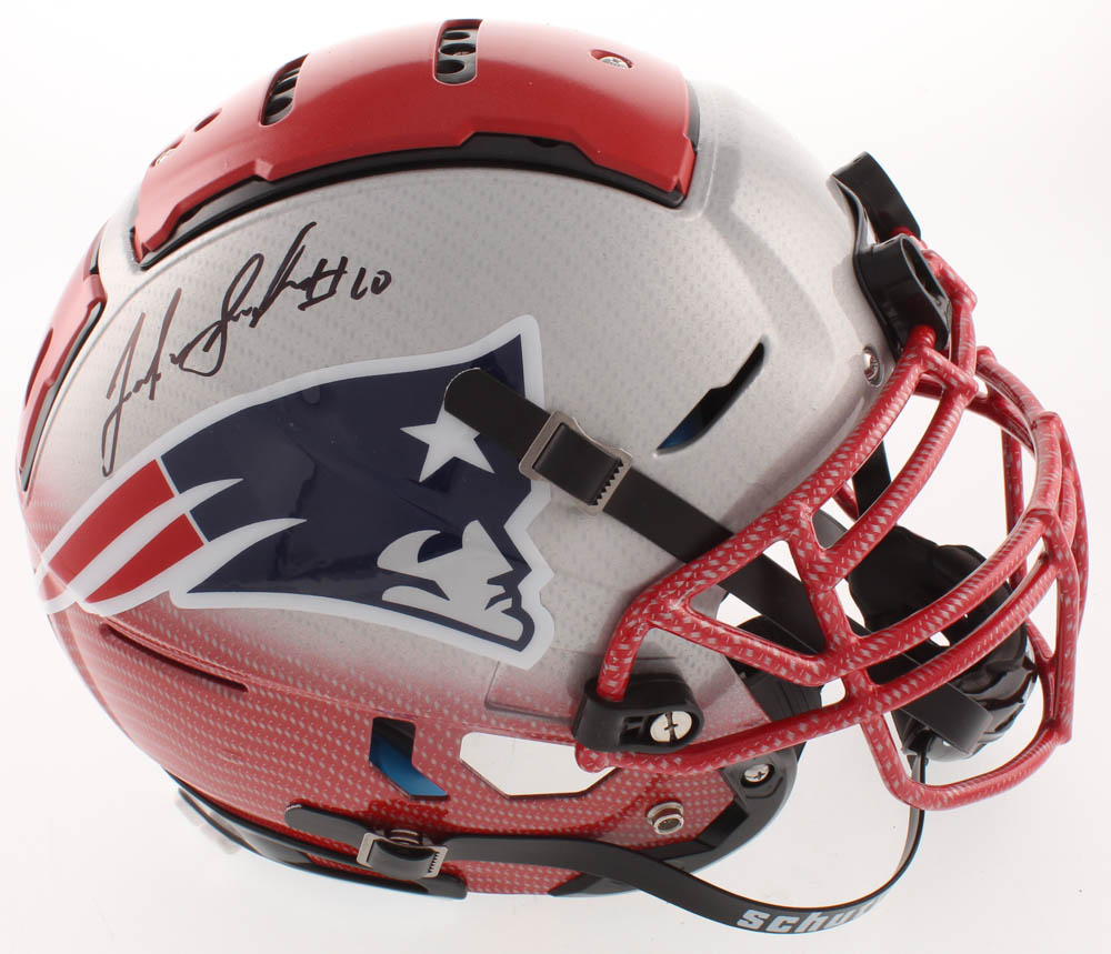 Schutt New England Patriots full-size authentic on-field hydro dipped F7 helmet. Hand-signed in black felt-tip pen by Josh Gordon