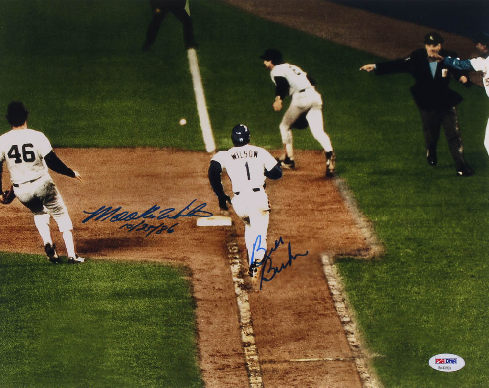 Mookie Wilson & Bill Buckner Signed 1986 World Series 11x14 Photo Inscribed "10/25/86" (PSA COA)