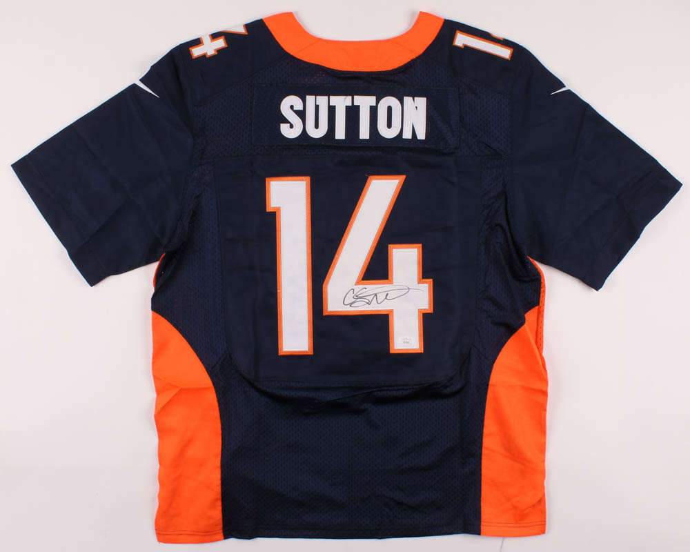 Nike on-field style jersey. Everything is sewn on, size 44. Hand-signed in black felt-tip pen by Courtland Sutton.
