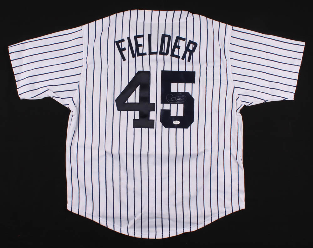 Custom on-field style jersey. Everything is sewn on, size XL. Hand-signed in silver felt-tip pen by Cecil Fielder.