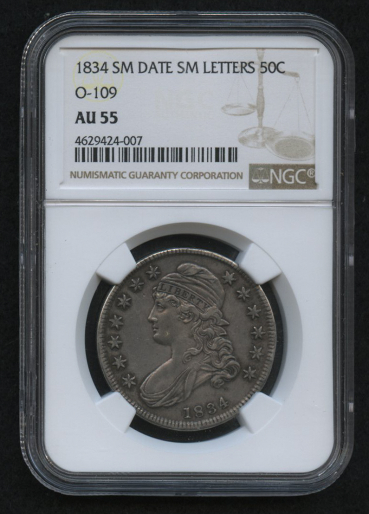 1834 50¢ Capped Bust Half-Dollar - SM Date SM Letters - Overton 109 (NGC AU 55)