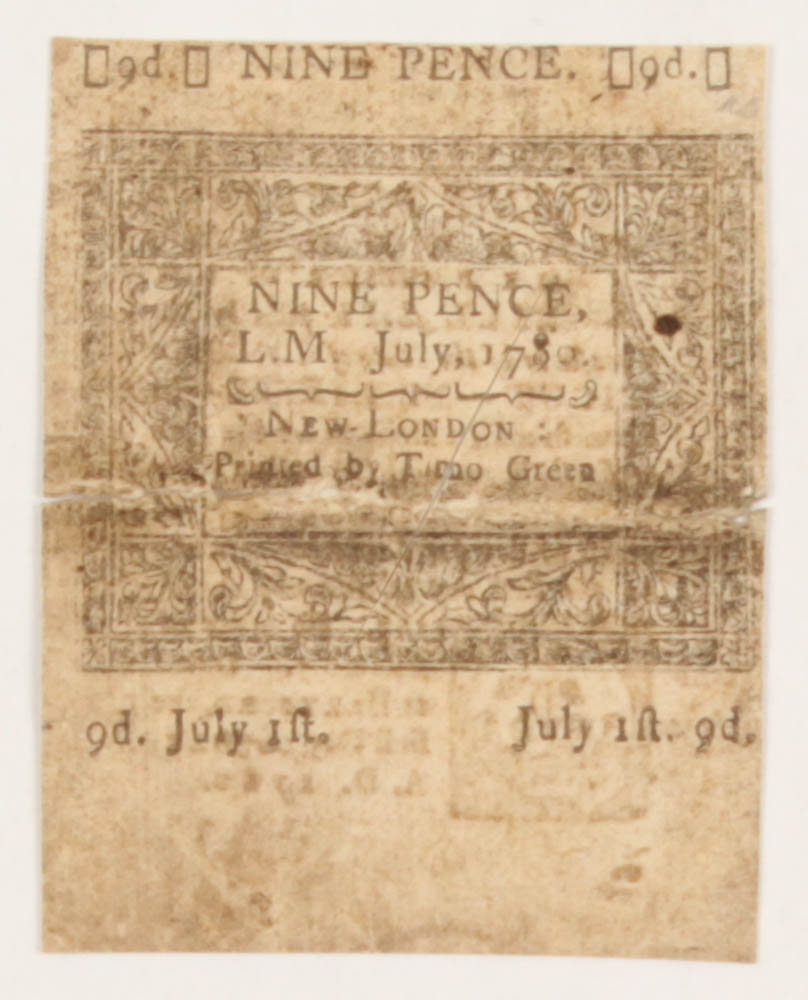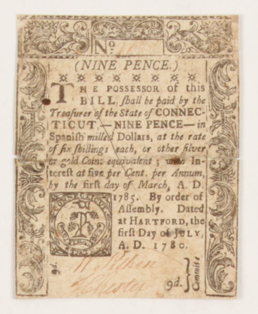 1780 Nine Pence Connecticut Colonial Currency Note