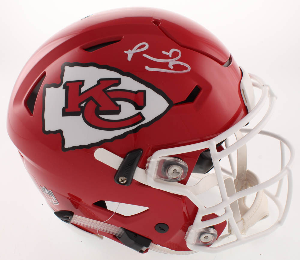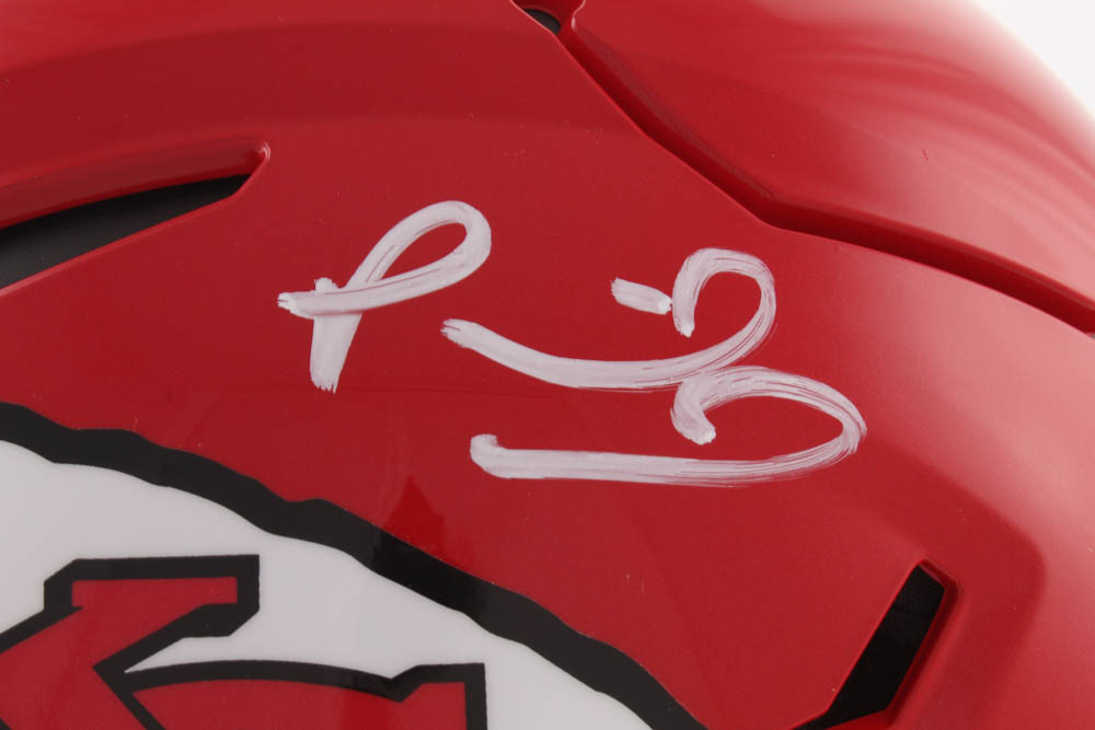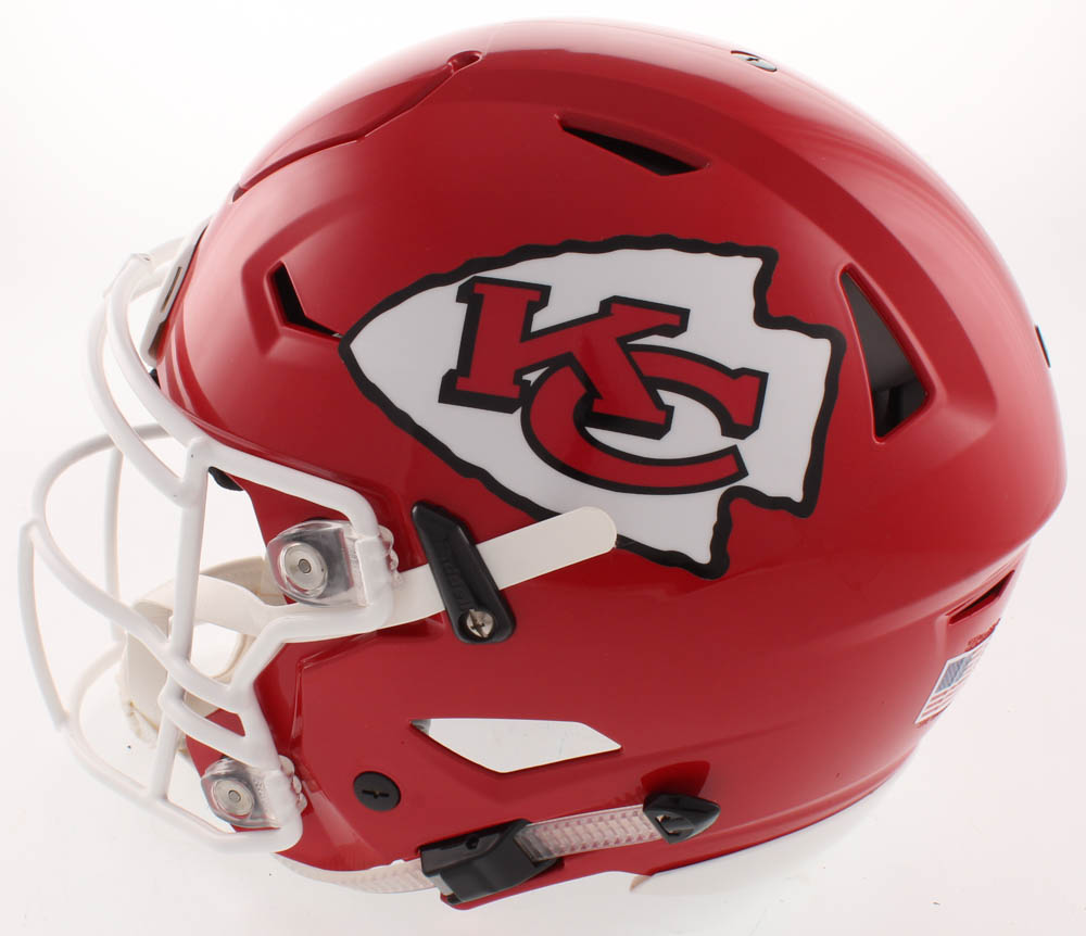 Riddell Kansas City Chiefs full-size authentic on-field SpeedFlex helmet. Hand-signed in white paint pen by Patrick Mahomes.