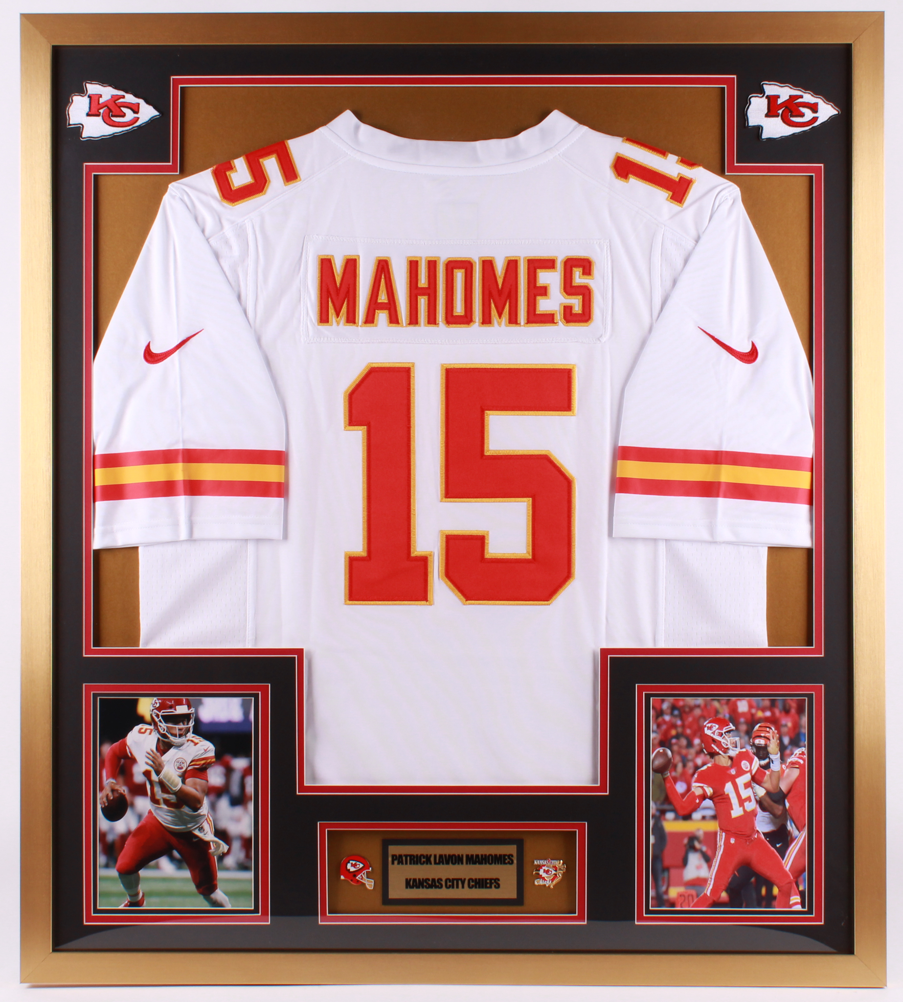 Patrick Mahomes Kansas City Chiefs 32x36 Custom Framed Jersey Display with Kansas City Chiefs Pins