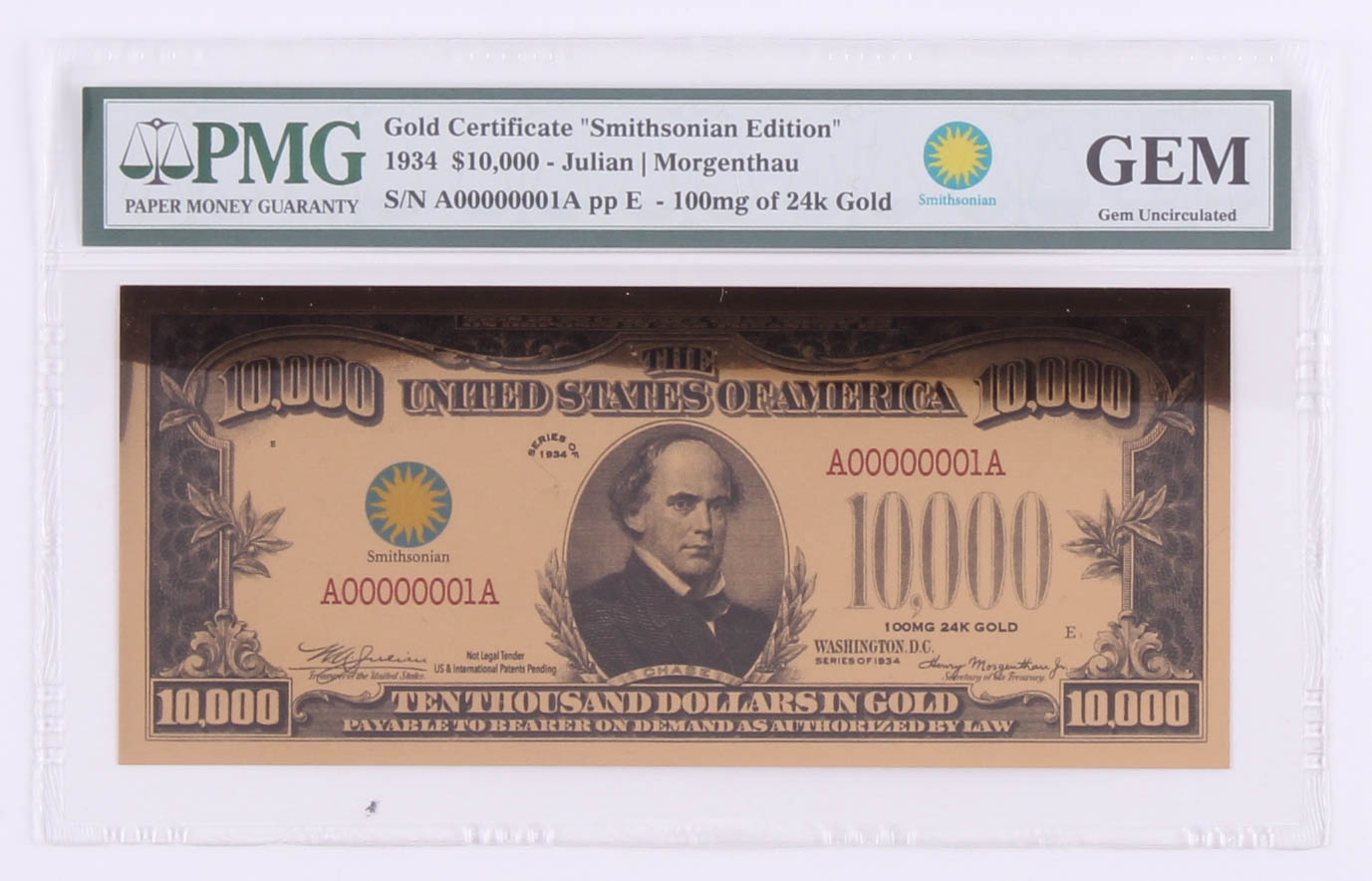1934 $10,000 Ten Thousand Dollar "Smithsonian Edition" Gold Certificate (PMG GEM Uncirculated)