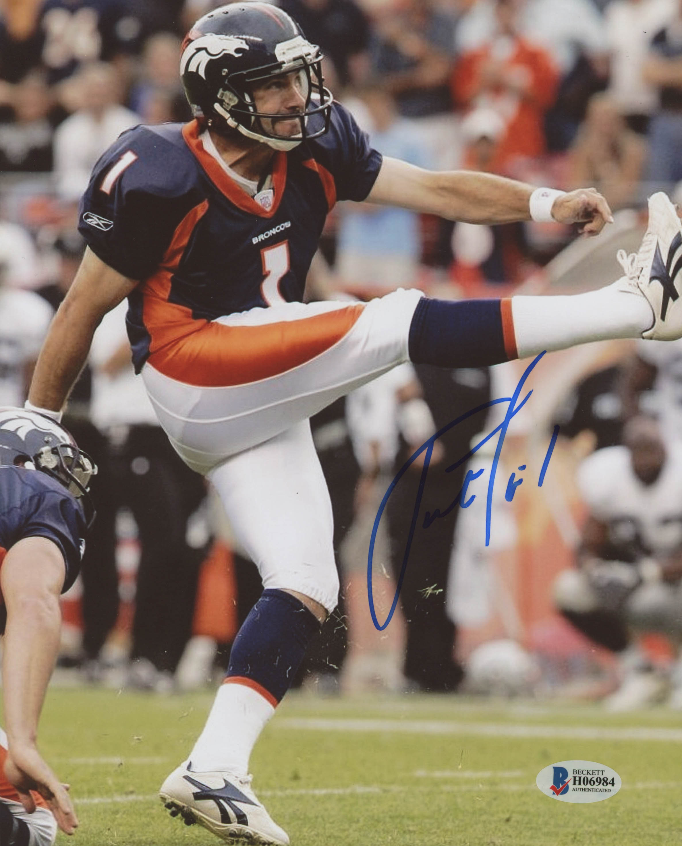 Jason Elam Signed Denver Broncos 8x10 Photo (Beckett COA)