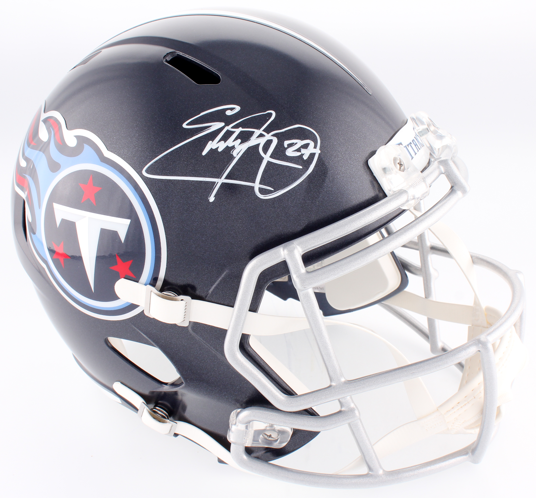 Tennessee Titans full-size replica speed helmet has been hand-signed in white paint pen by Eddie George.