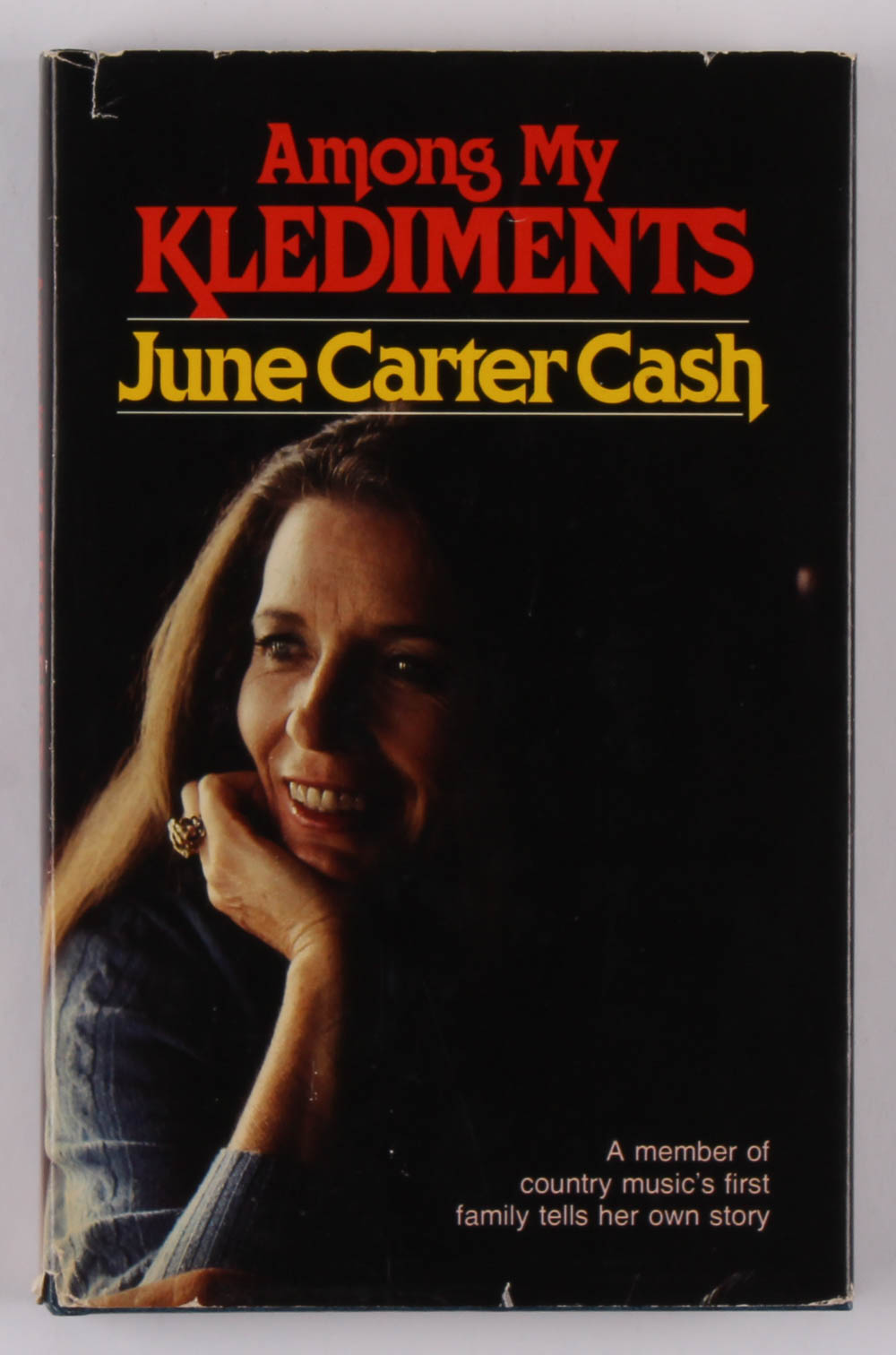 "Among My Klediments" hard-cover book. Hand-signed in black ink pen by June Carter Cash (D. 2003).