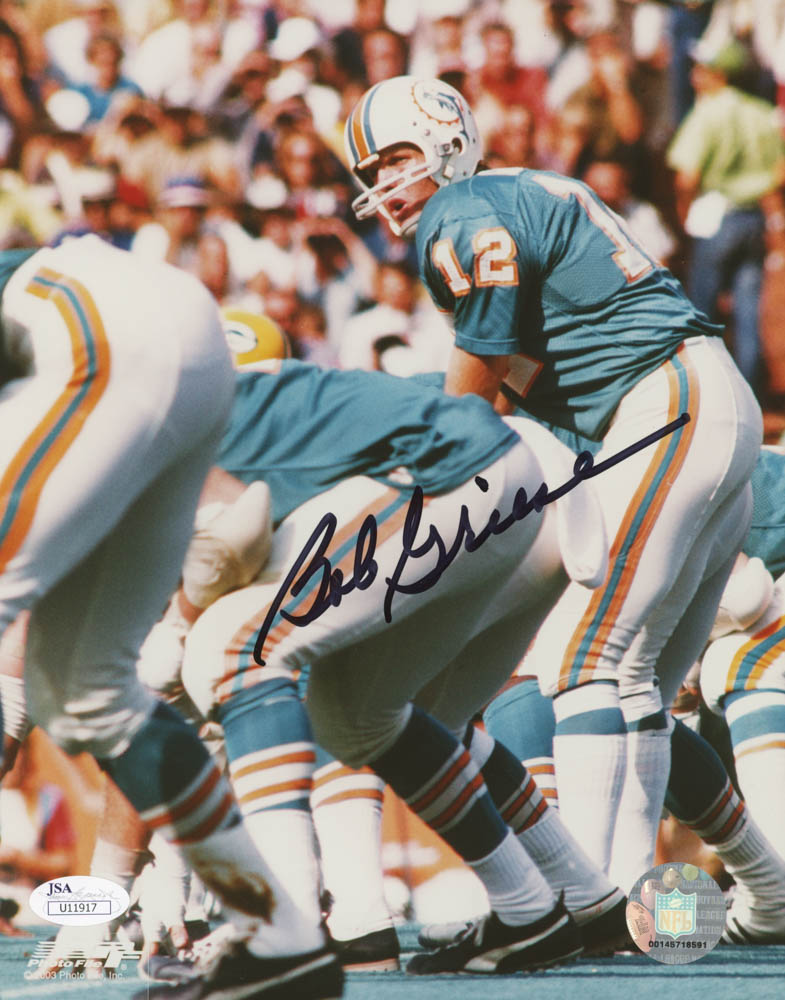 Photo measures 8" x 10" in size and has been hand-signed in black felt-tip pen by Bob Griese (HOF).