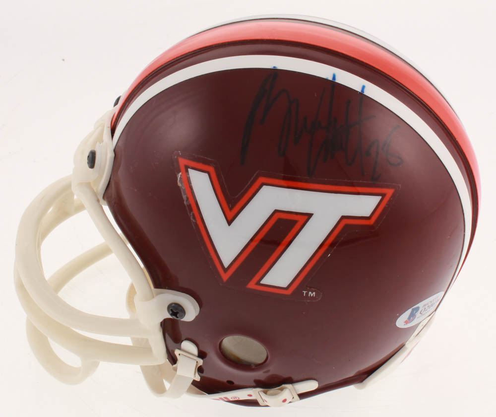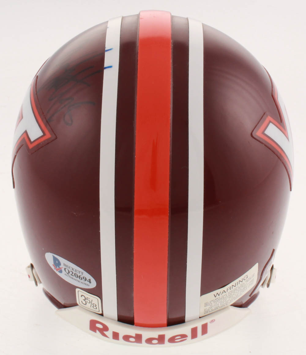 Riddell Virginia Tech Hokies Mini Helmet. Hand-signed in blue felt tip pen by Bruce Smith (HOF).