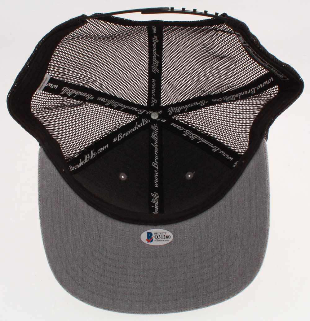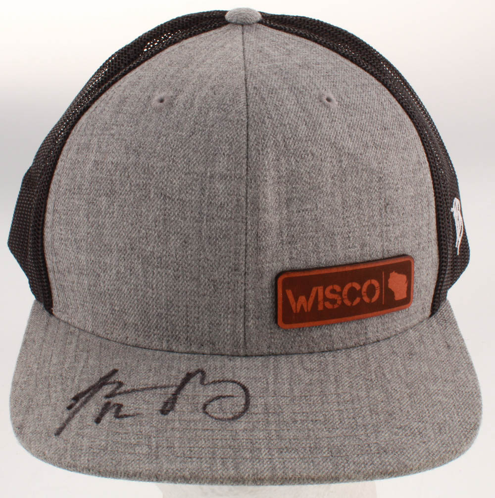 Adjustable snapback Wisconsin hat has been hand-signed in black felt-tip pen by Aaron Rodgers (Green Bay Packers).
