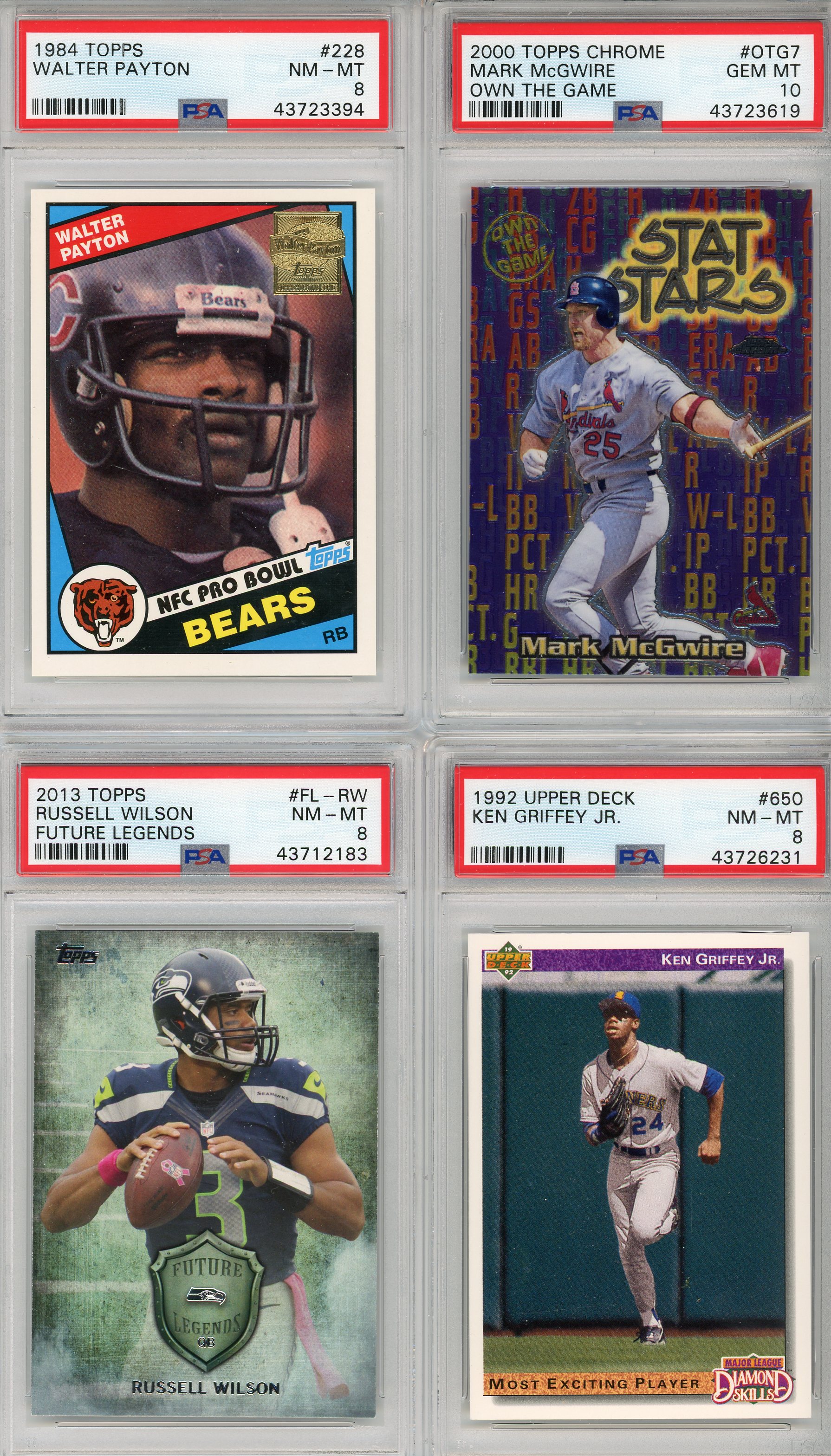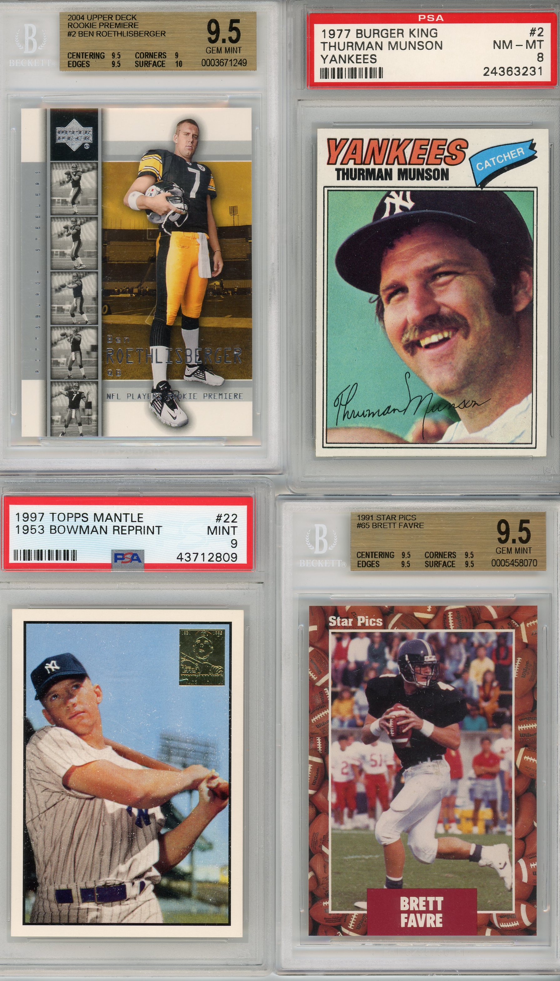 - (100+) CARDS TOTAL FROM COMMON TO HOF CARDS, INSERT CARDS, AUTOGRAPHED CARDS, INDIVIDUAL CARDS, UNOPENED PACKS, UNOPENED RACK PACKS, UNOPENED BOXES OR UNOPENED SETS + GRADED CARDS!!!