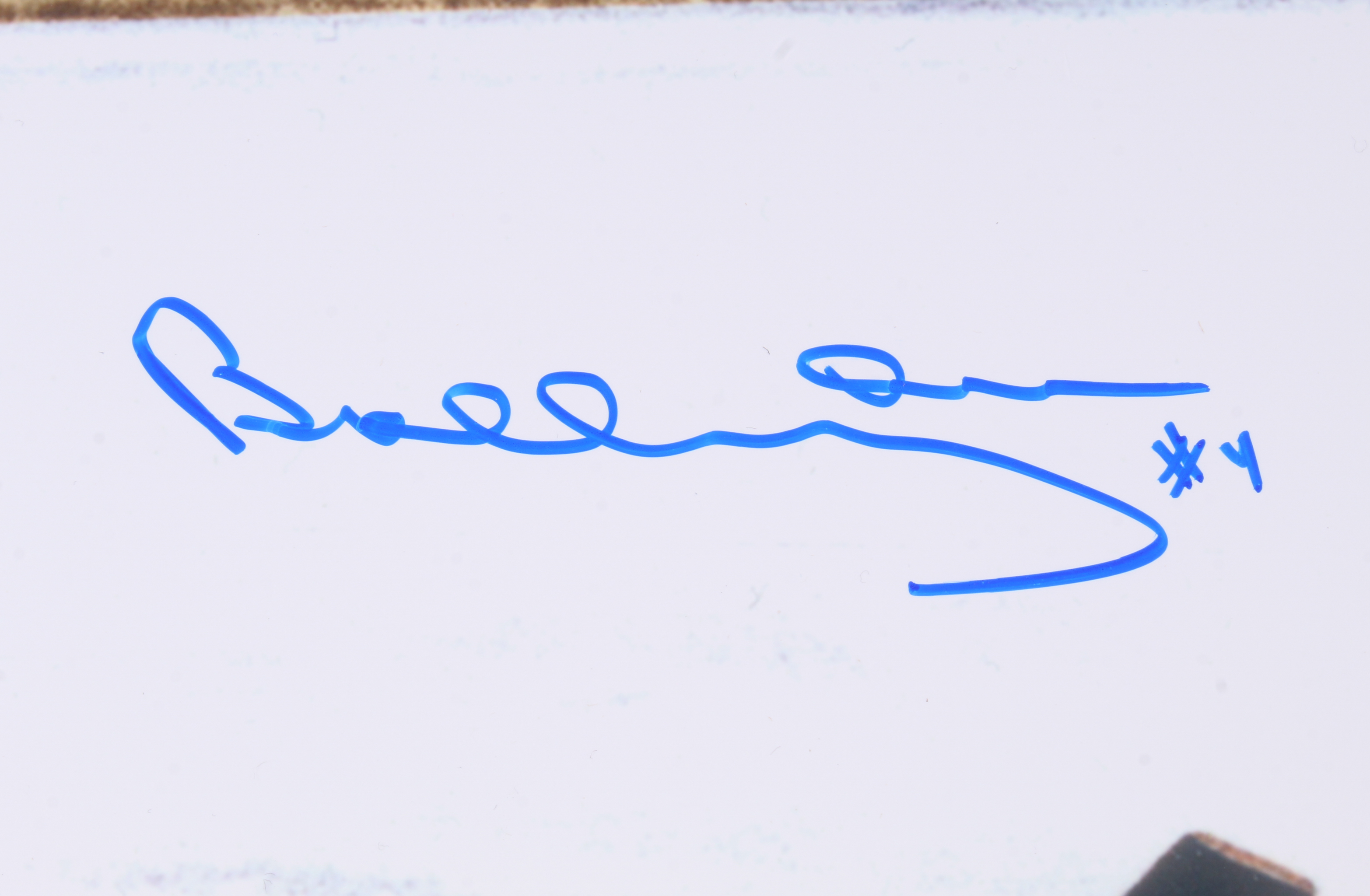 Photo measures 16" x 20" in size and features one of the most iconic moments in all of sports. The photo is hand-signed in blue felt tip pen by Bobby Orr (HOF).